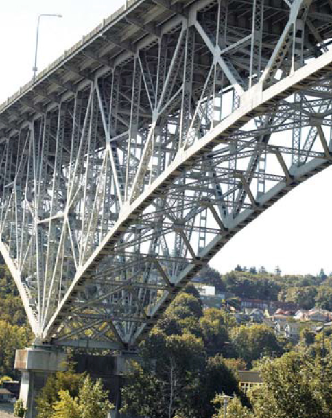Lost in thought, I stood in the grocery store checkout line, with the design for a table desk on my mind. To be frank, I was frustrated with my design efforts in general, because they were bounded by rules that were locked in formulas and equations. I needed a new approach—I needed to break some rules. Through the store’s overhead windows loomed Seattle’s Aurora Bridge, with its network of beams and arches (photo, left). My thoughts drifted to the main arch, and I marveled at its sense of strength.