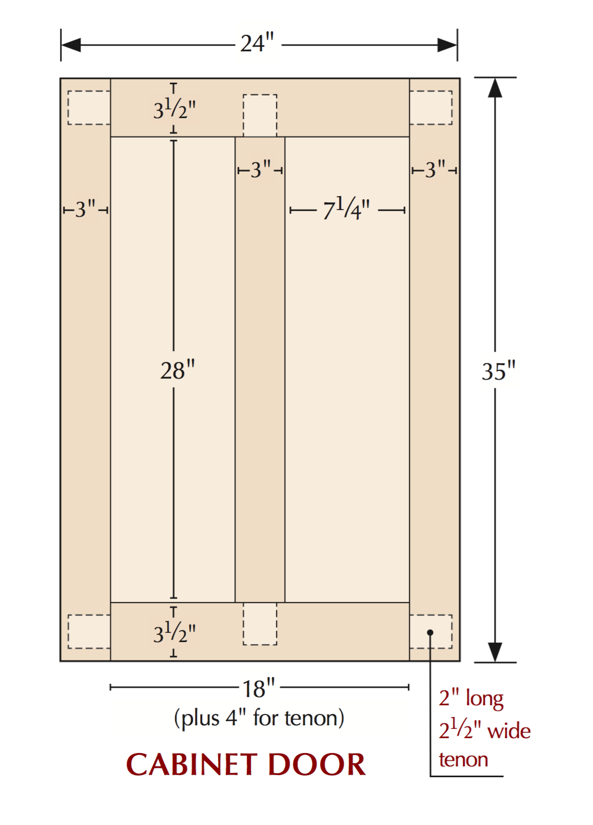 Chop the mortises on the stiles (they should be 1⁄4” wide and 2 1⁄2” deep) and assemble the four frame components to check for square. I find it helpful to lay the frame on top of the carcase at this point to make sure everything is the right size.