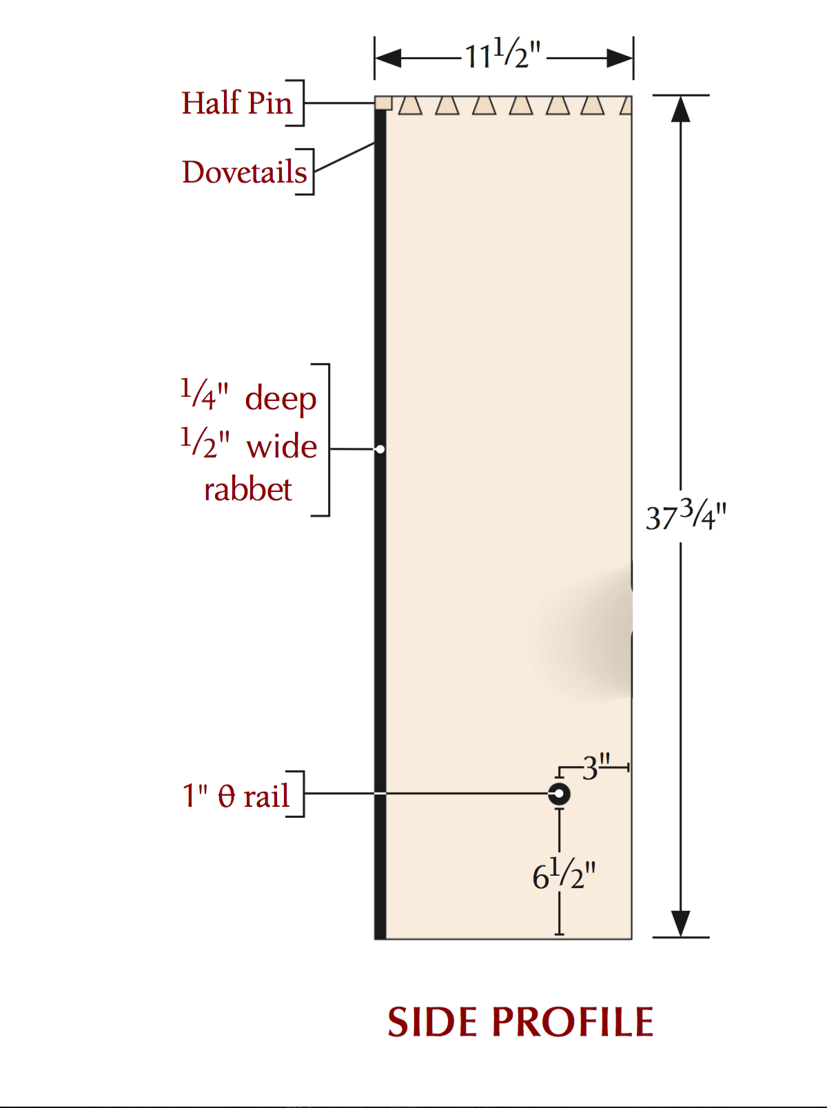 The captured half pin hides the rabbet on the rear edge of the casework.