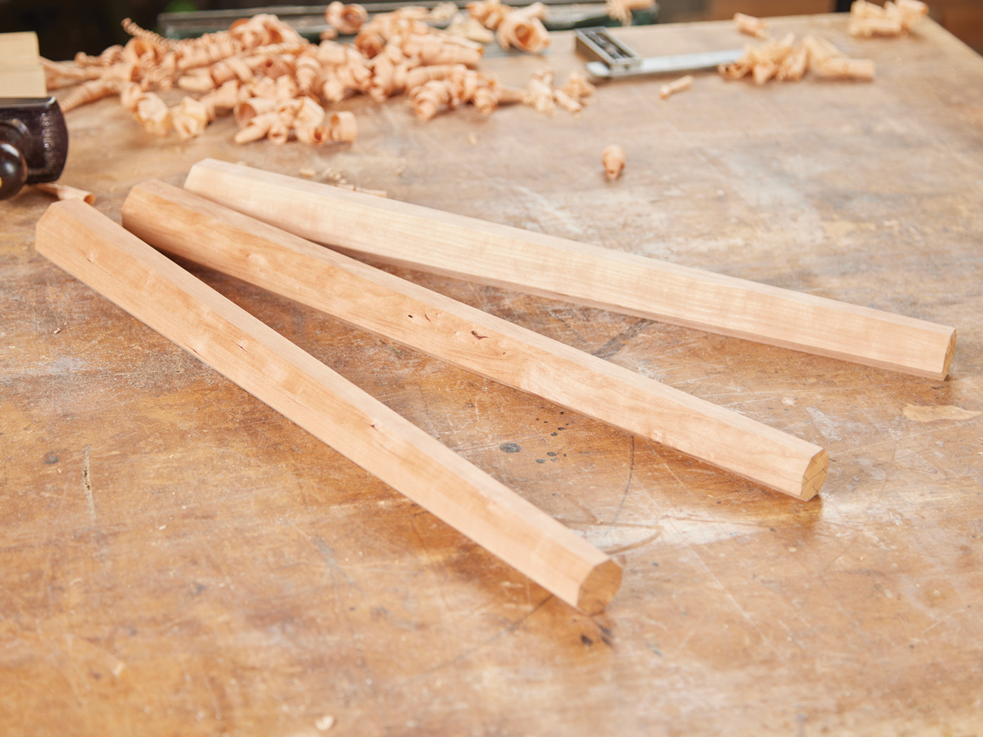 12 The finished legs are smooth and tapered. These legs are now ready to have tenons cut at the ends.