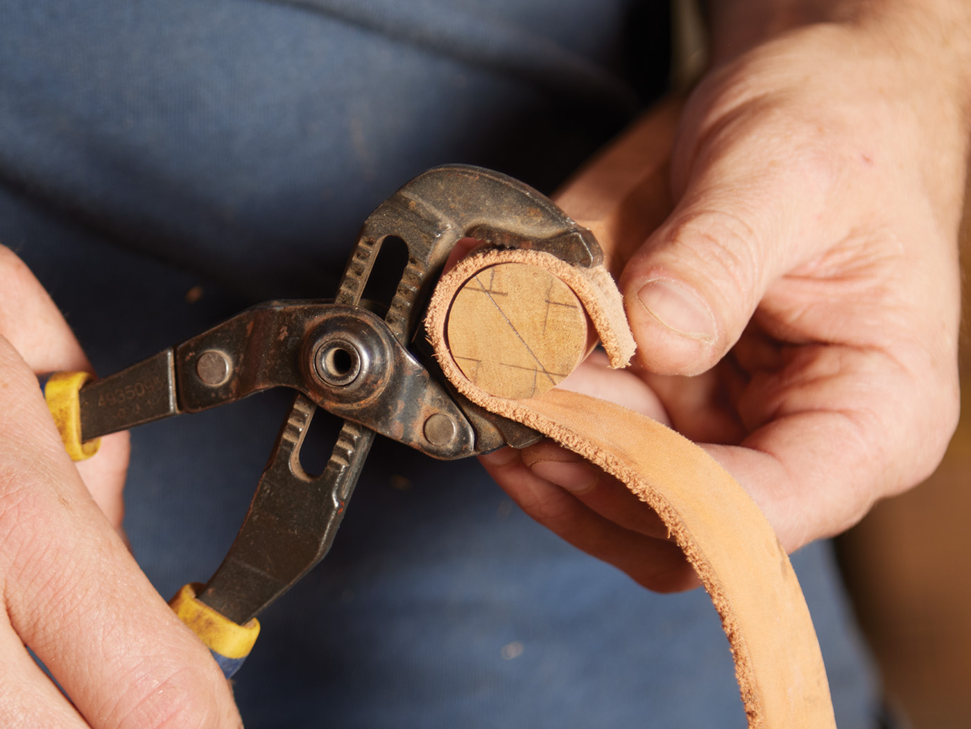 15 Use a pair of channel-lock style pliers and a leather scrap. This compresses the tenon for easier fitting.
