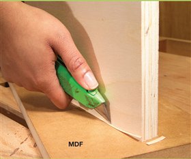 use a sharp utility knife. MDF or hardboard makes the best trimming