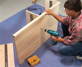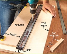 3. Screw the cabinet half of the drawer slides to the drawer divider
