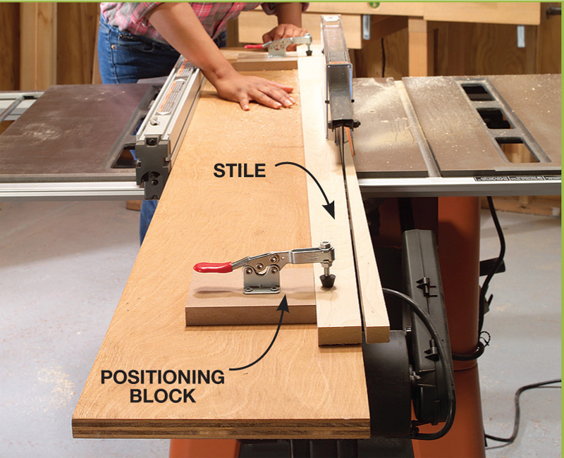 10. Taper the stiles that will be applied to the sides of the cabinet with a shop-made tapering jig. After sanding, stain the stiles.
