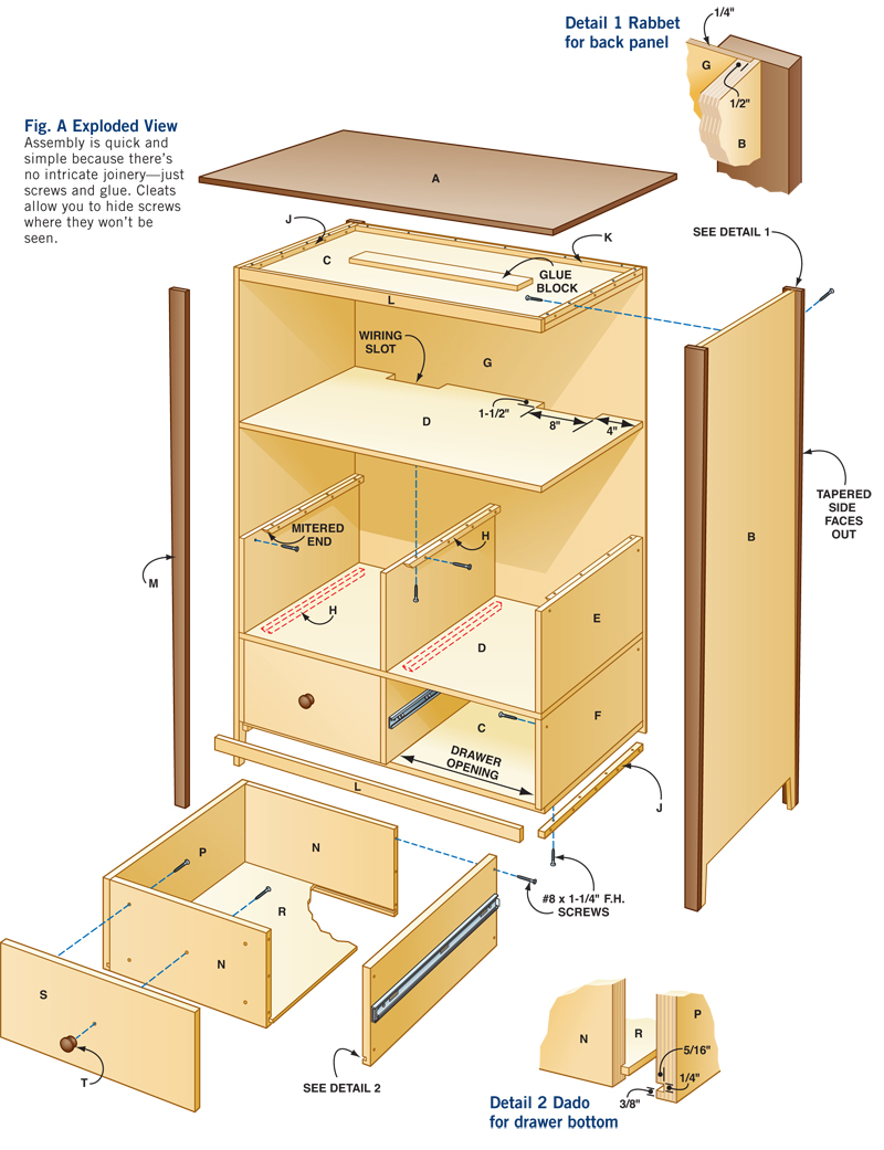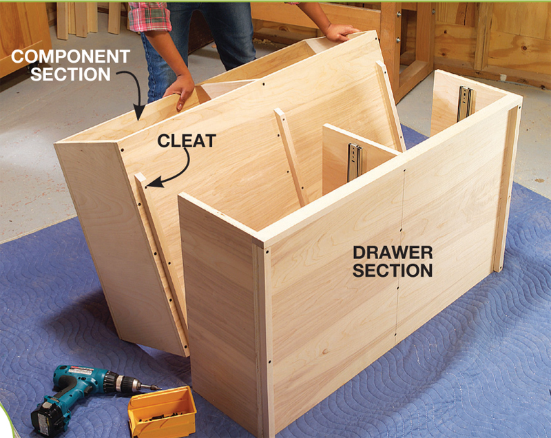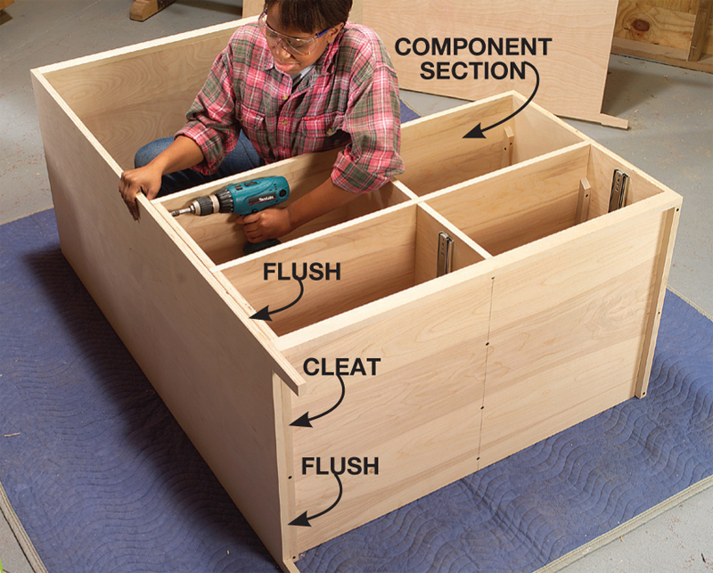 5. Join the component section, which is simply a screwed-together plywood box, to the drawer section. The cleats keep the parts aligned.