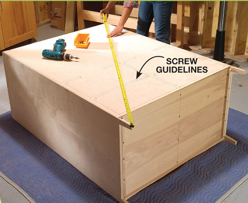 13. Stand the unit up and mark the location for the screws that will attach the back (G, Photo 8). Then lay the unit down and attach the back with screws every 6 in. (Photo 9).