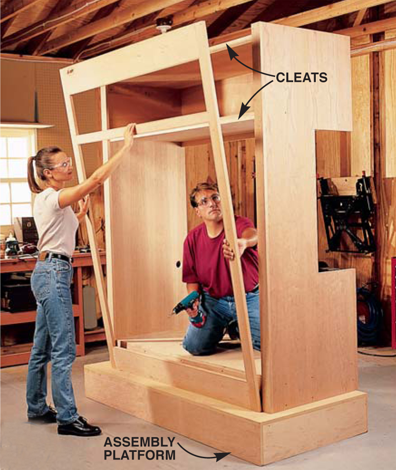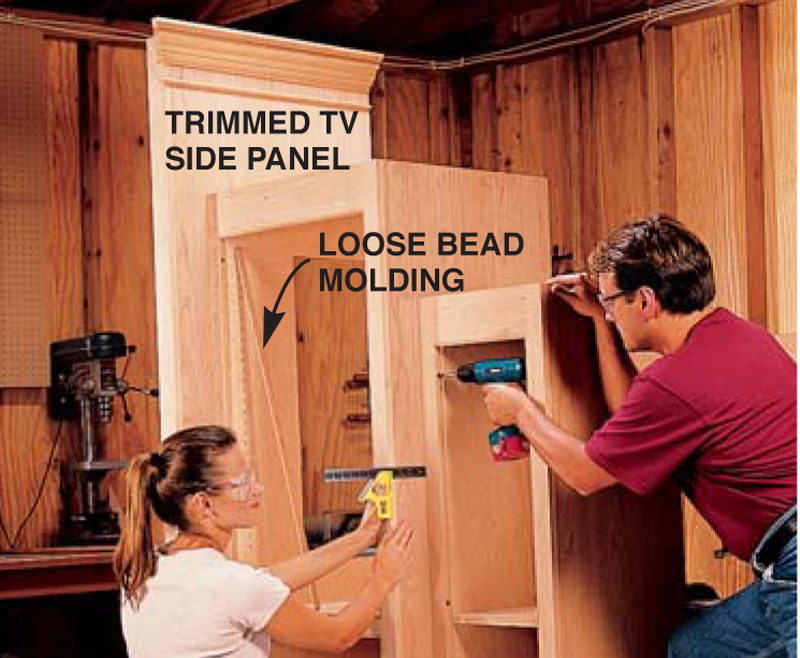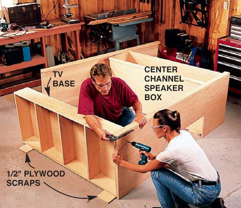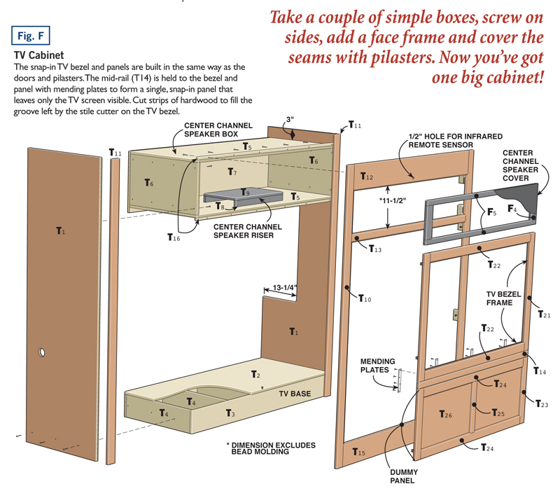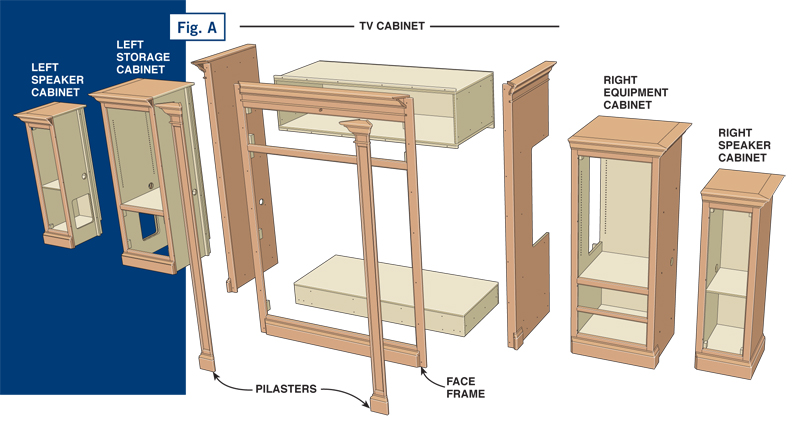 | At first glance, a project of this scale may seem impossible for anyone other than a professional with all the tools and plenty of room. But take a closer look. The largest of the five cabinets, the one for the TV, breaks down into seven easy-to-assemble pieces. You’ll be able to get the finished product out of your basement shop with no trouble.