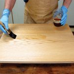 The finish is mahogany gel stain on the inside, and two coats of dark green latex paint on the exterior.
