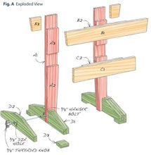You’ll need a tablesaw, handsaw, drill and a number of clamps. A miter saw would be handy for cutting parts to length. Begin by cutting all the parts except A3 and B3—you’ll cut these to fit later on. Assemble the parts in the order shown in the drawings on the next page. The basic idea is to glue the pieces in layers (Photo 1), then rip both sides to make the edges perfectly even (Photo 2).
