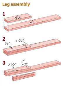 Here are a few notes to guide you along the way. In step 12, you’ll be gluing a foot so that it fits tightly around a leg. The best way to do this is to place a leg between the foot pieces during the glue-up. Clamp these three pieces to draw them close. To prevent the leg from becoming glued to the foot, place some shims under the leg, as shown in the drawing.