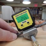 The best tool for indexing the protrusion/angle number is a square digital level. First find a flat surface to work on, lay the level on it and calibrate the level to zero degrees.