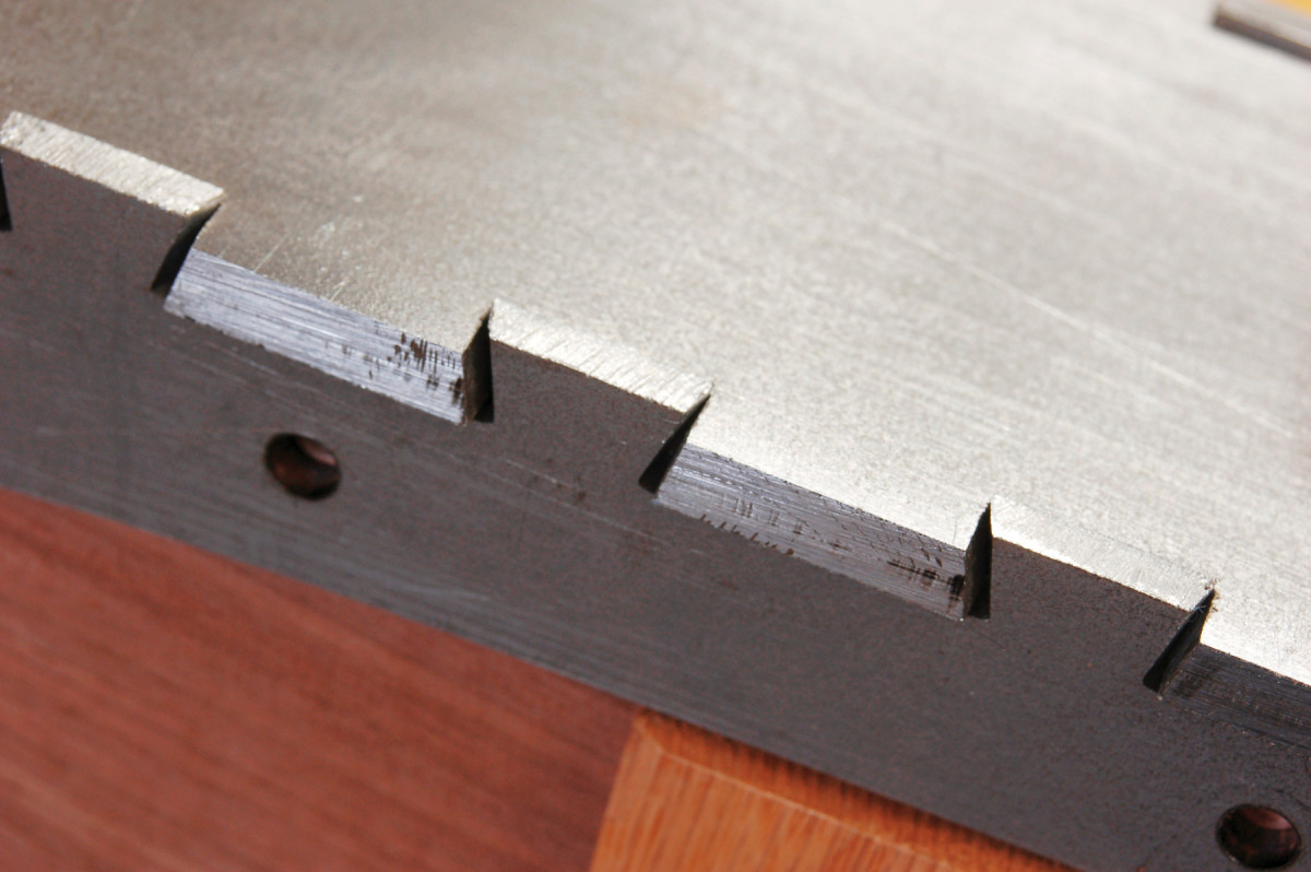 3. I used the dovetails on the sides to mark the pins on the sole, which were only rough-cut. Filing these joints to fit was pretty easy. However, unlike dovetails in wood, metal dovetails must lock the joint both vertically and horizontally.