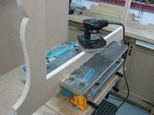 This is the last chance I have to sand the interior edges of the face frames. Once installed, it would be practically impossible to sand properly at the shelves level.