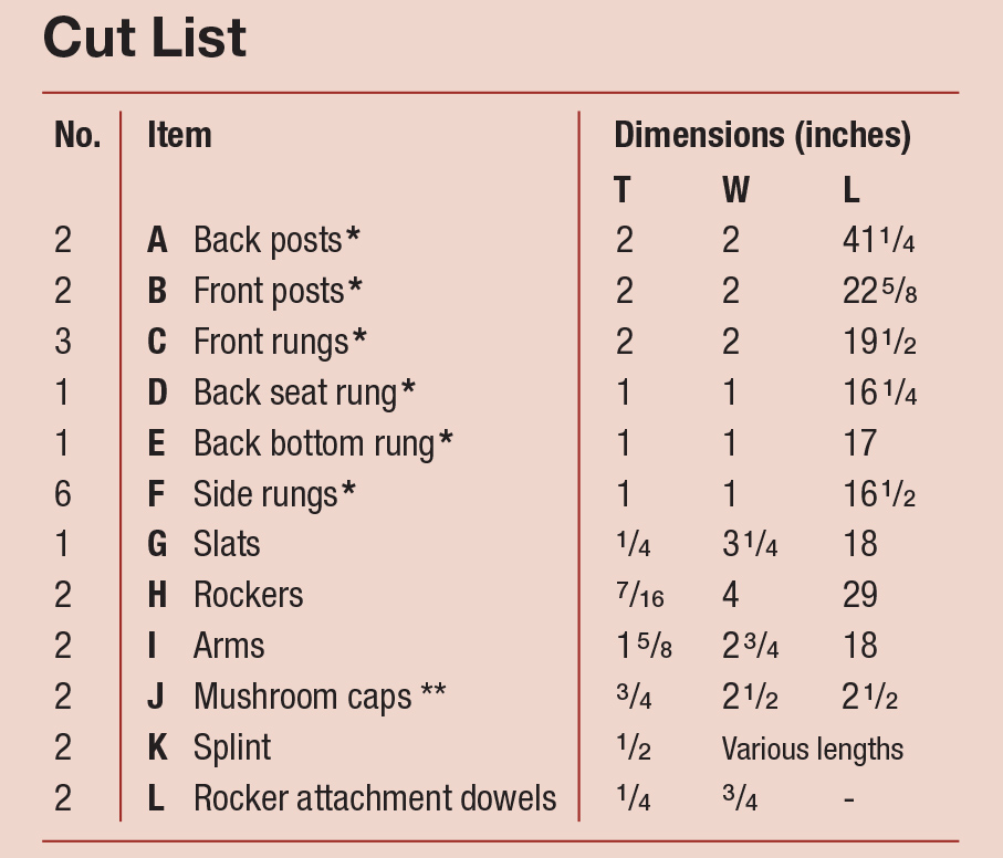 Shaker Rocking Chair Cut List and Diagrams