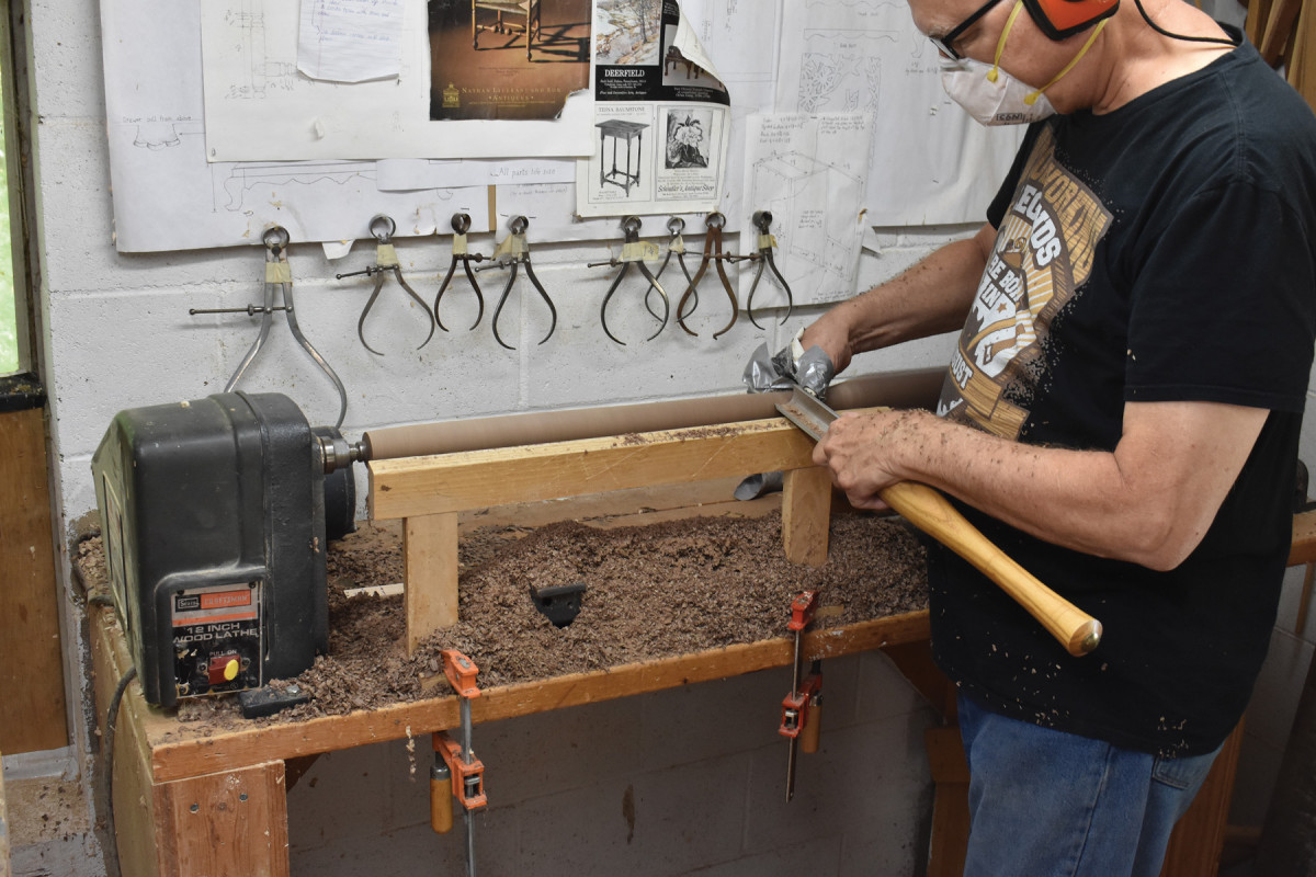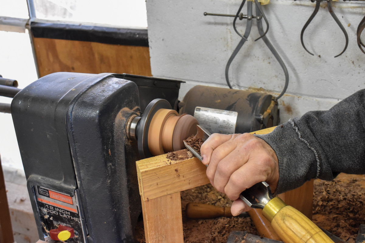 3. I use a 1/4″ fingernail gouge and a 1/2″ skew to create the turned features. (See “Scalloped Edge Table” in the August 2018 issue of Popular Woodworking for a further discussion of my turning methods.)