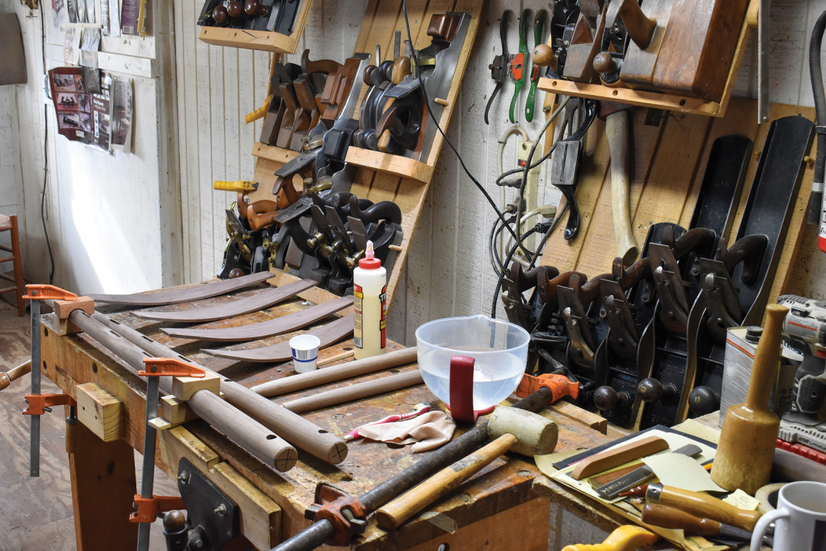 17. To avoid disaster and stress, I always take time to lay out the tools and materials I’ll need for glue-up. (Back ladders are notoriously difficult to assemble because there are so many tenons and mortises to glue and align.)