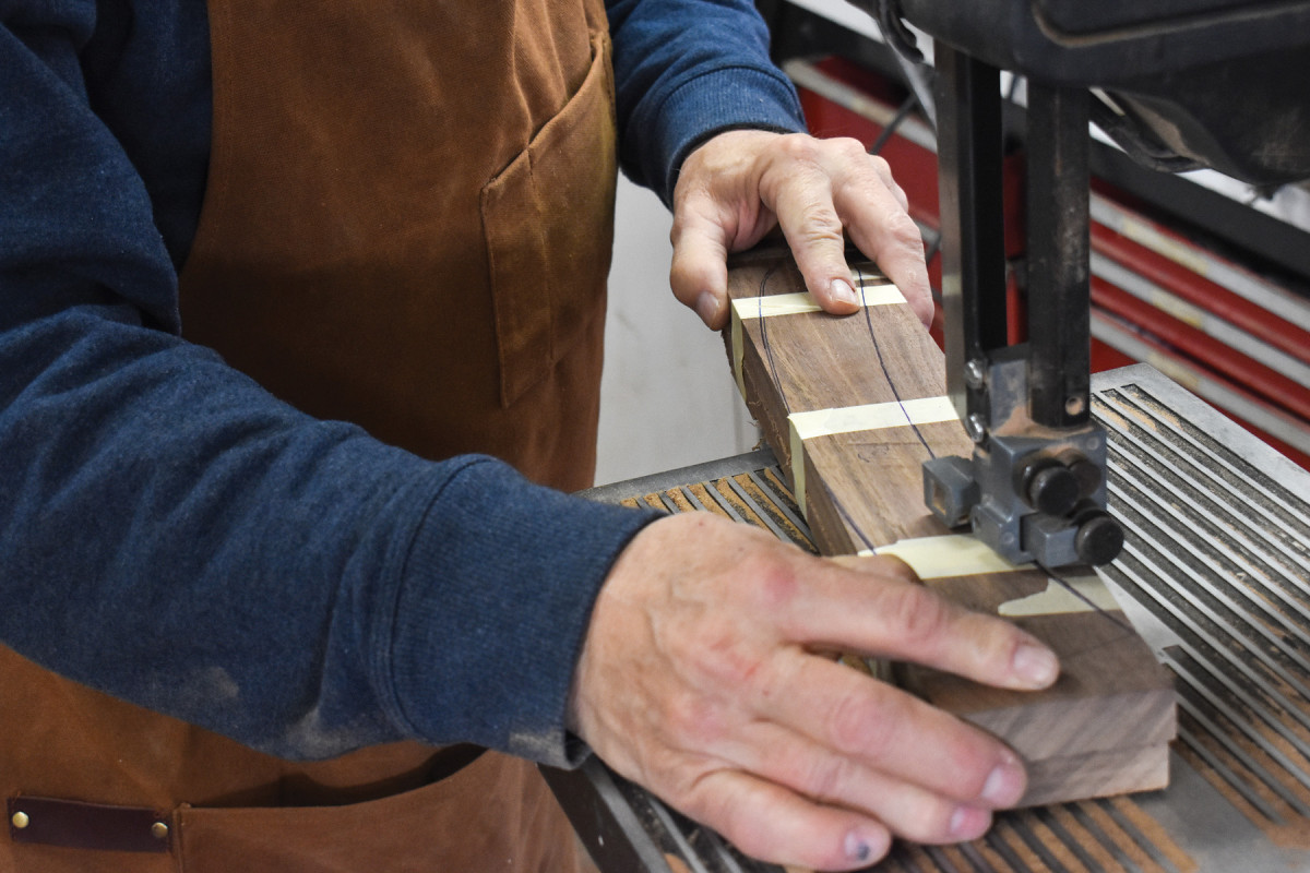 31. After reassembling the arm blank with masking tape, I begin to make cuts that will define the two edges of this arm.