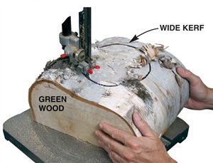 Most bandsaws come with ordinary carbon-steel or spring-steel blades. These blades are okay for general bandsaw work but the untreated metal is not designed to withstand the rigors of resawing. Resawing wood is essentially rip cutting a board across its width (Photo 1). There’s a tremendous amount of wood to remove and the heat and abrasion caused by resawing will quickly wear out an ordinary blade.