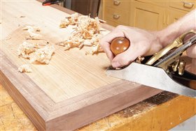 12. Even the edging with the top. You could run the top through the drum sander, but planing or scraping by hand is more satisfying. With thick veneer, there's no danger of cutting through.