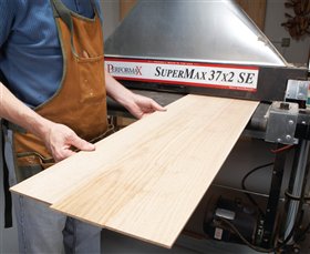 1. You can use standard plywood for a framed top or make your own extra-thick shop-made veneer. Begin by resawing solid wood into 3/16 in. thick pieces.
