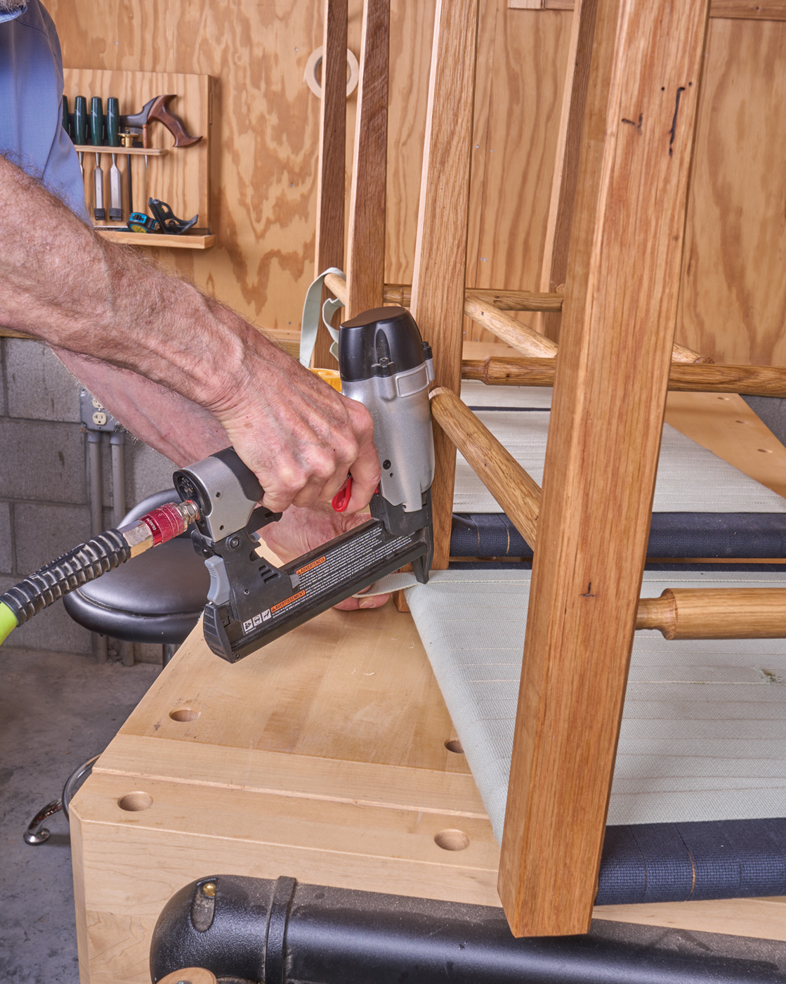 26 At the end, use a couple of narrow crown staples to complete the weaving.