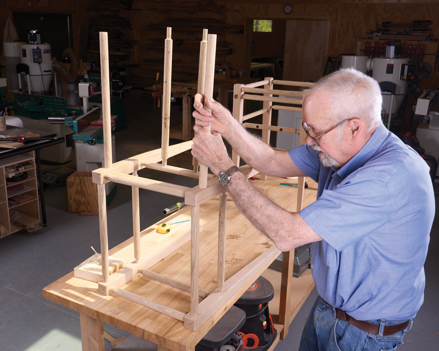 16 Set the end assemblies on a flat surface, and start to install the stretchers to connect them. Dry fit everything first.