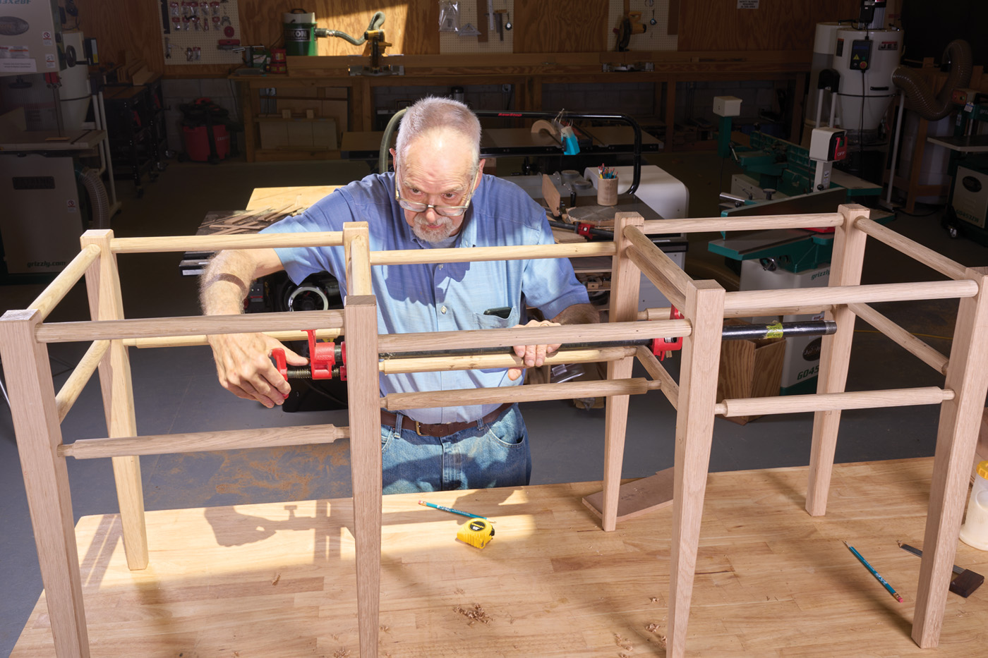 13 A pipe clamp can be a good way to make sure that the tenons are seated fully.