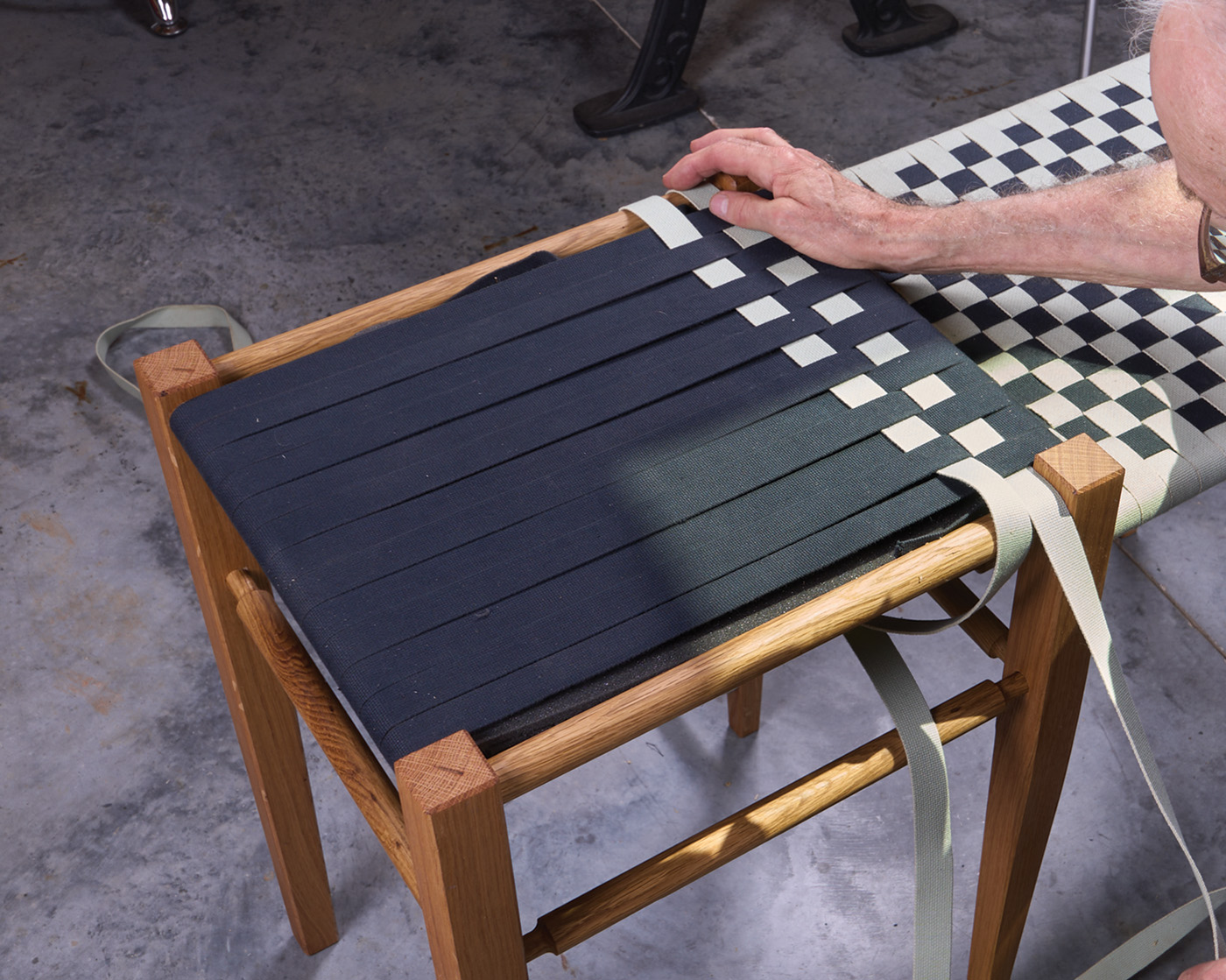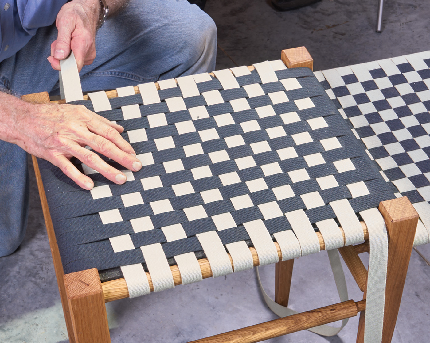 The Shakers were incredibly inventive, not just of the furniture they designed, but of their techniques with which it was assembled. As a craftsman, I’ve been interested in working my own inventiveness, but utilizing that which they’ve given me including seating woven from “Shaker tape.” It’s relatively easy and long lasting and is woven in uniform sizes and colors from cotton. This particular cotton tape can be purchased by the roll in a variety of colors from Amazon and other craft suppliers.
