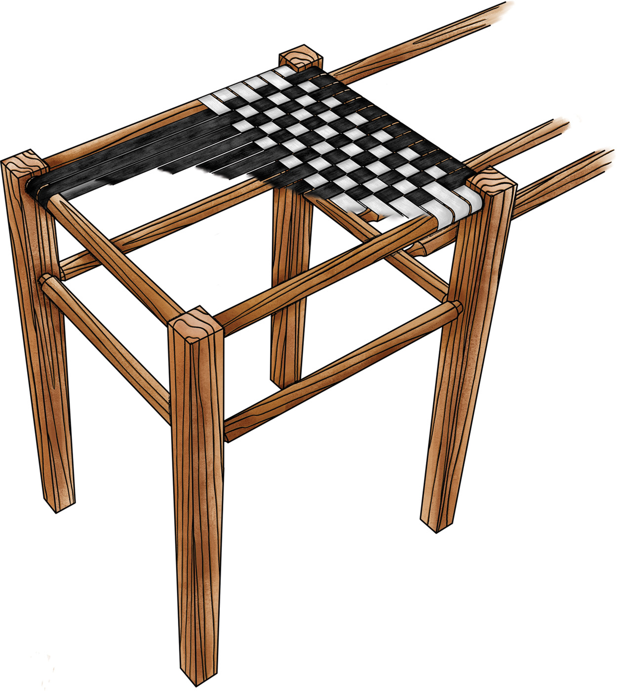 24 If you notice the initial weaves start to get tight and hard to fish the new weave through, a bent piece of coat hanger can help feed it through.