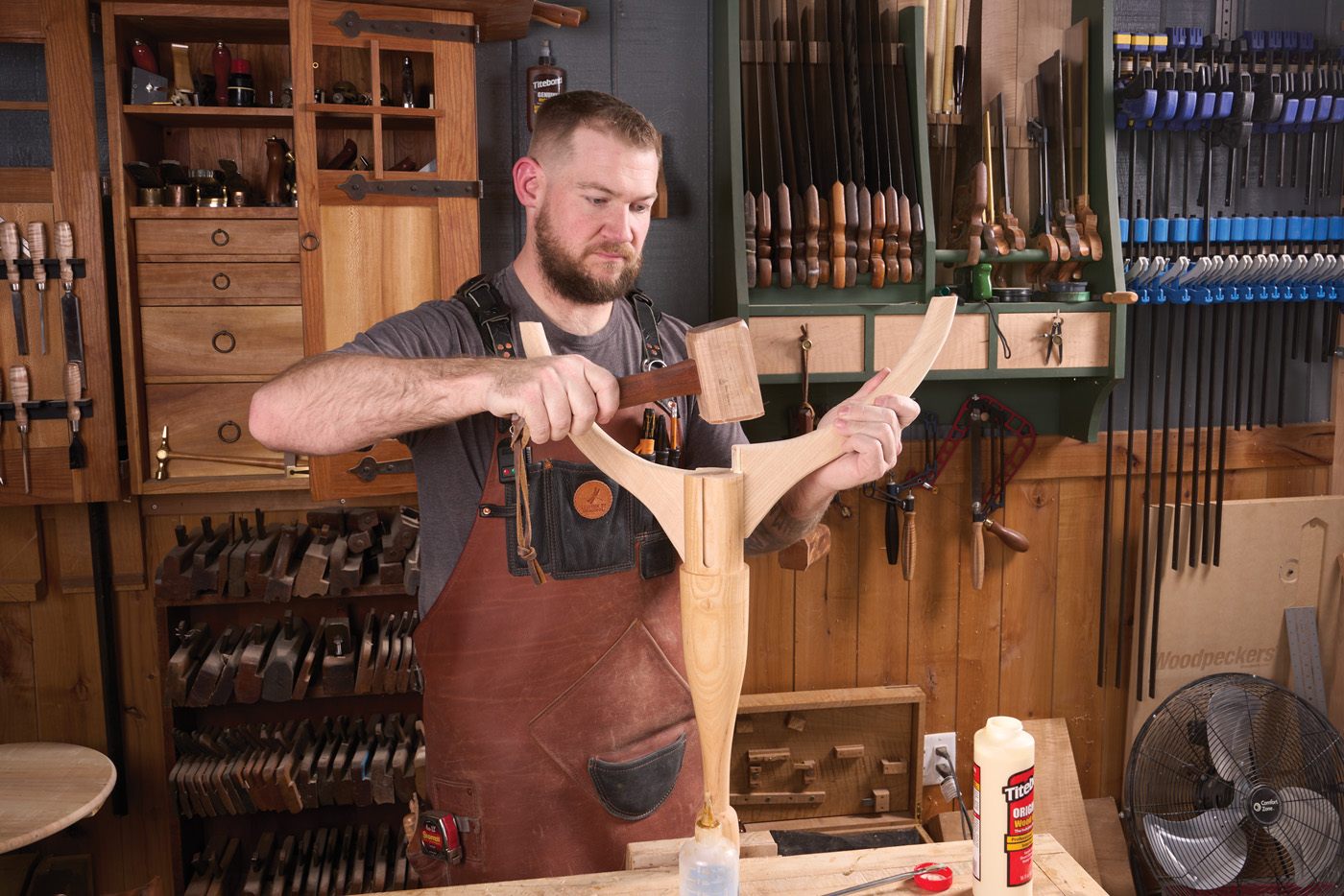 23 A spokeshave helps blend curve of the leg to the pedestal.