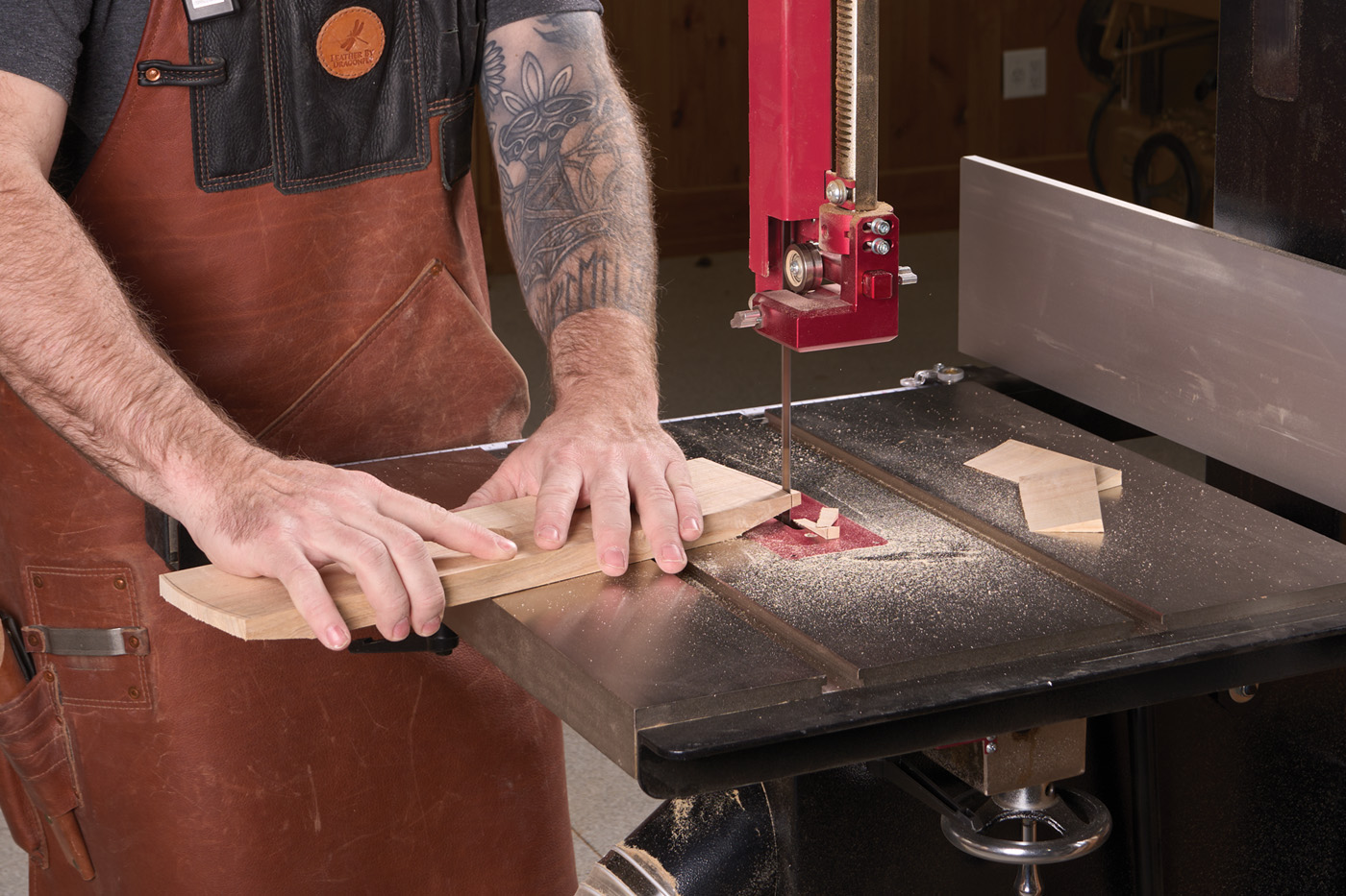 13 Rough cut the legs at the bandsaw. The key here is to stay as close to the line as possible and not leave a bunch of waste.