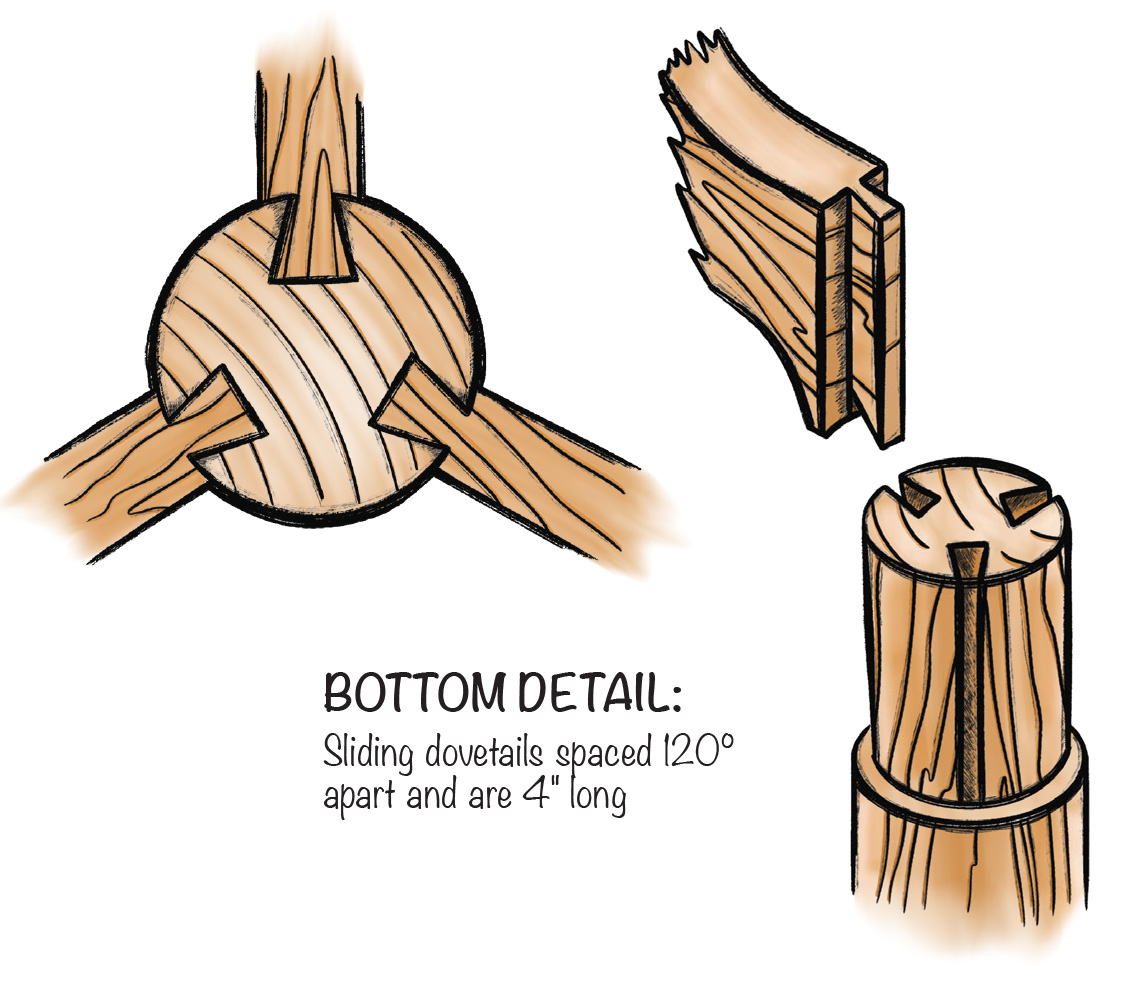 25 Drive the sliding dovetail into the pedestal with glue. The pedestal bottom should be a little long, and hang past the bottom of the legs.