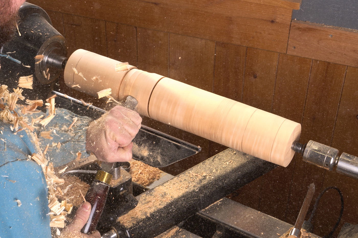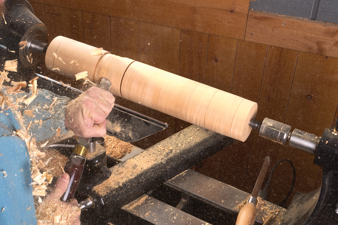 When turning these pedestals, I turn my Harvey lathe up as fast as it will go—about 3,500 RPM. The faster the speed, the easier and smoother the cuts will be.