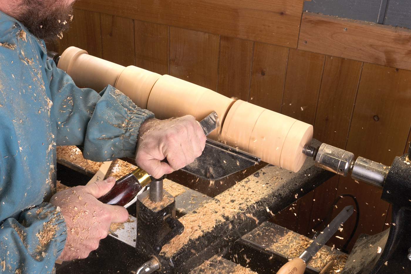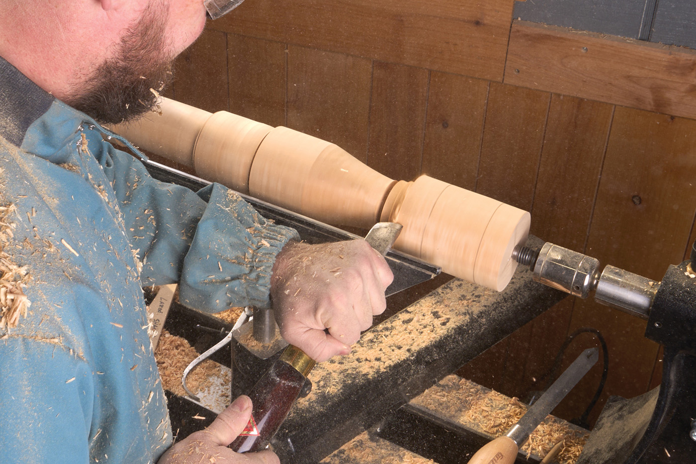 5 A skew chisel does much of the heavy waste removal and shaping.