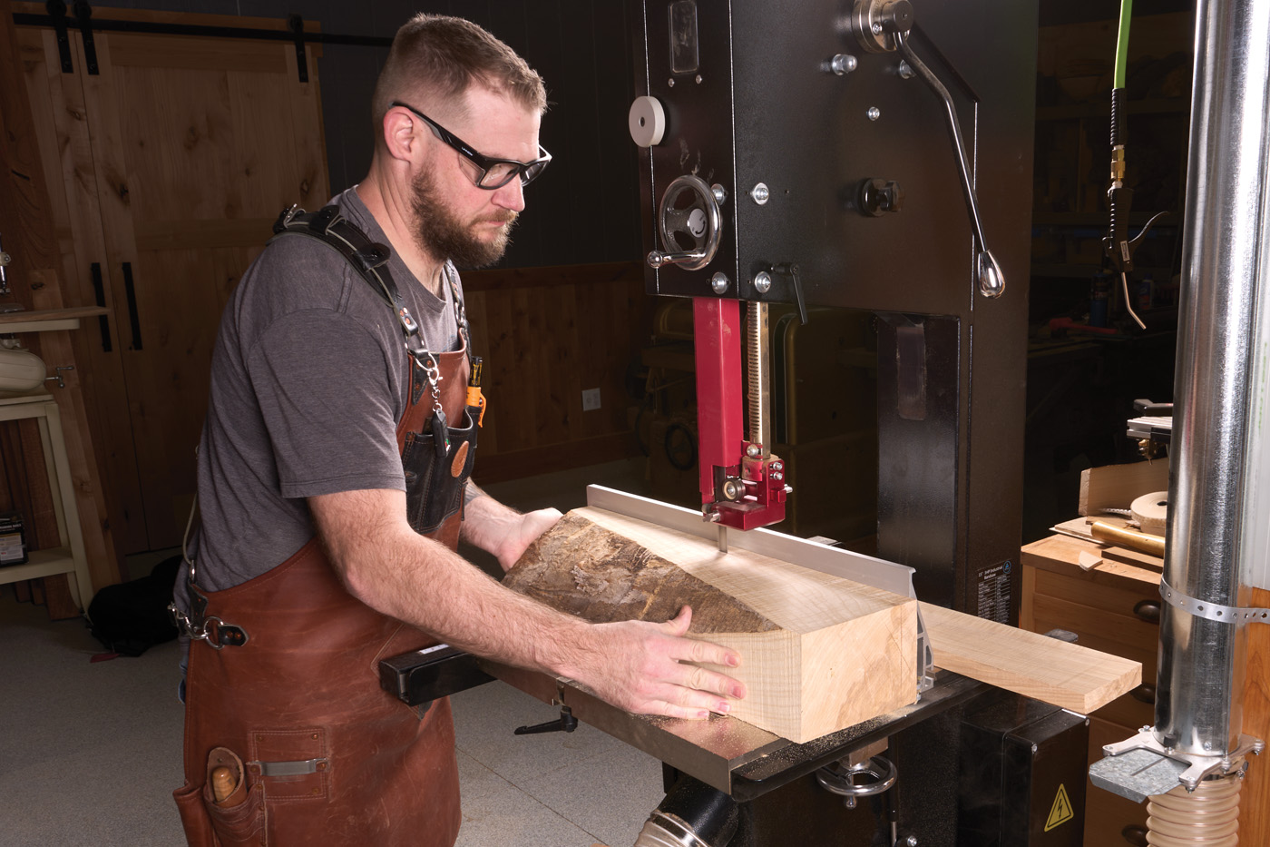 12 Start to break down stock for the legs. Here, I used a hunk of curly ash from which the entire table came.