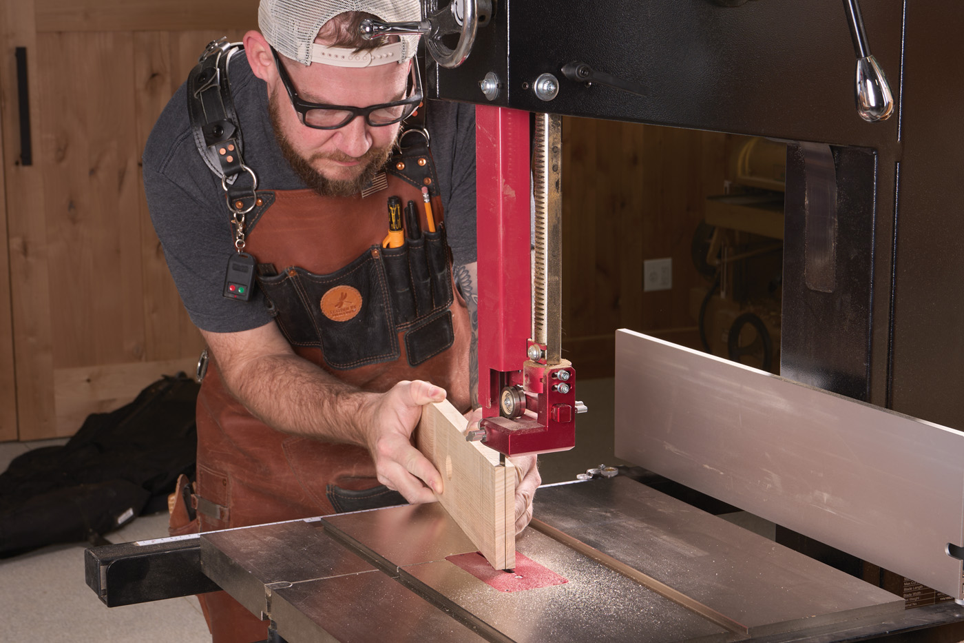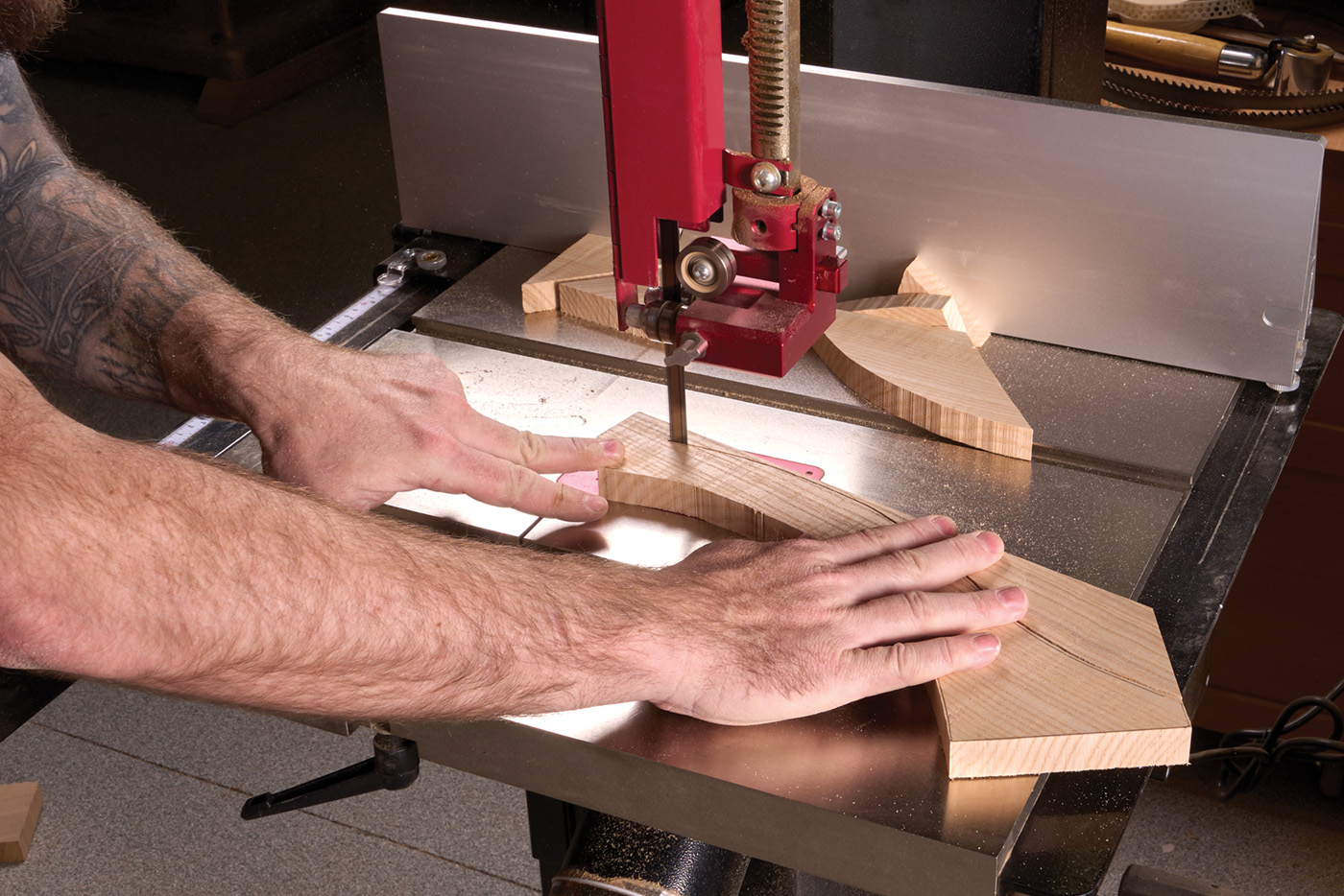 13 Rough cut the legs at the bandsaw. The key here is to stay as close to the line as possible and not leave a bunch of waste.