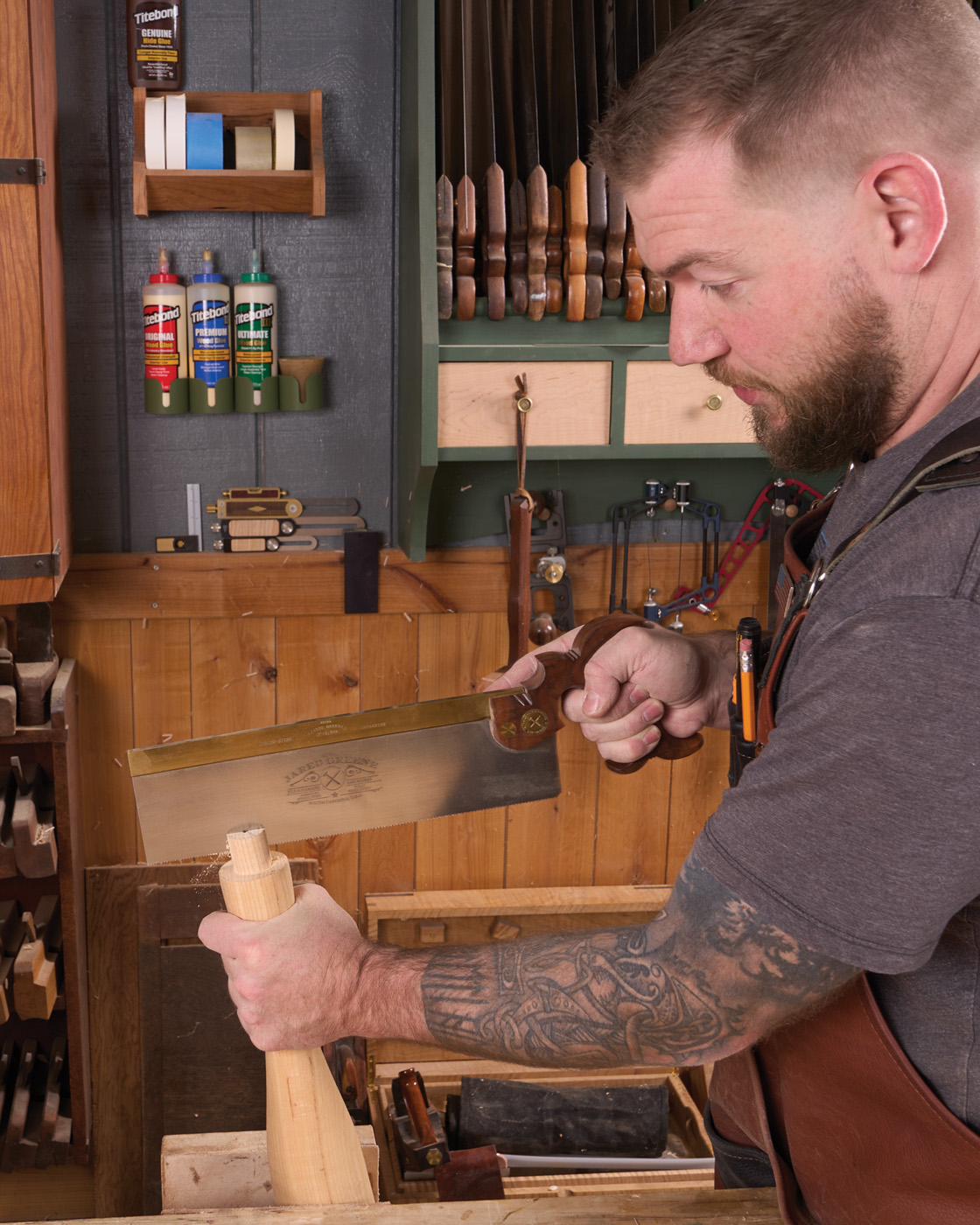 24 Slot the tenon with a backsaw.