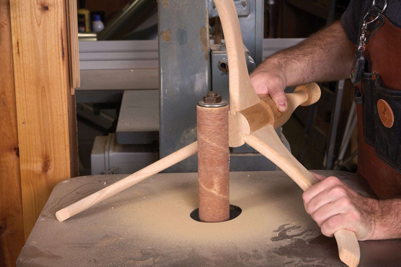 26 A spindle sander is a good way to flush the bottom of the pedestal with the bottom of the legs.