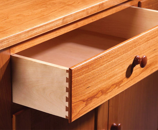 The essence of Shaker design is simplicity. Although I didn’t use traditional construction techniques in this project, I did keep it simple. Behind this sideboard’s elegant front and sides is a very easy-to-build birch-plywood box joined with biscuits. It’s strong and durable. The front and sides are assemblies that are added onto the box. The result is a beautiful, traditional-looking piece that doesn’t require complicated joinery.