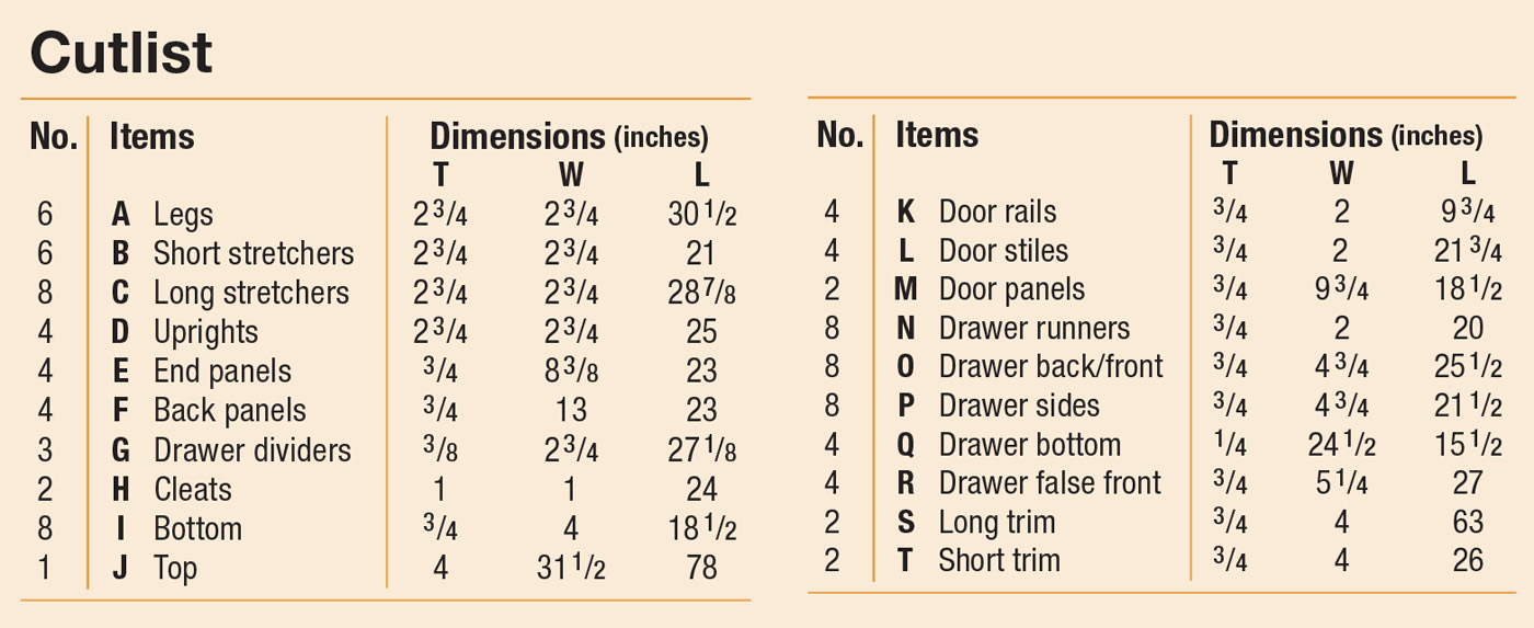 Cutlist and Diagrams