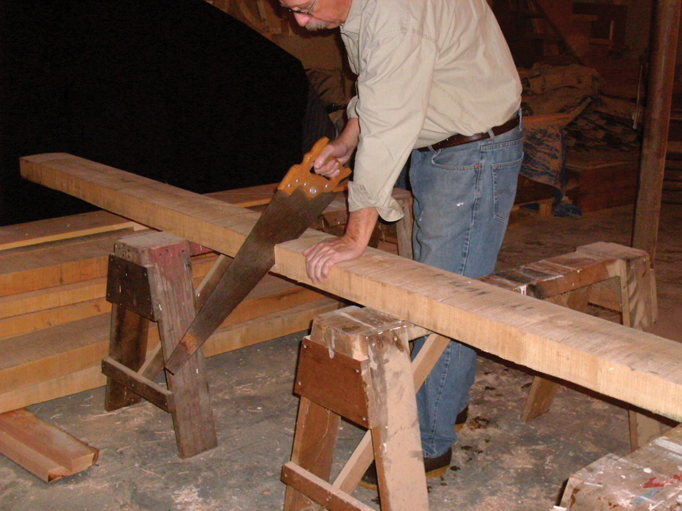 1 The workbench stock starts as 12/4 material and is broken down to size.