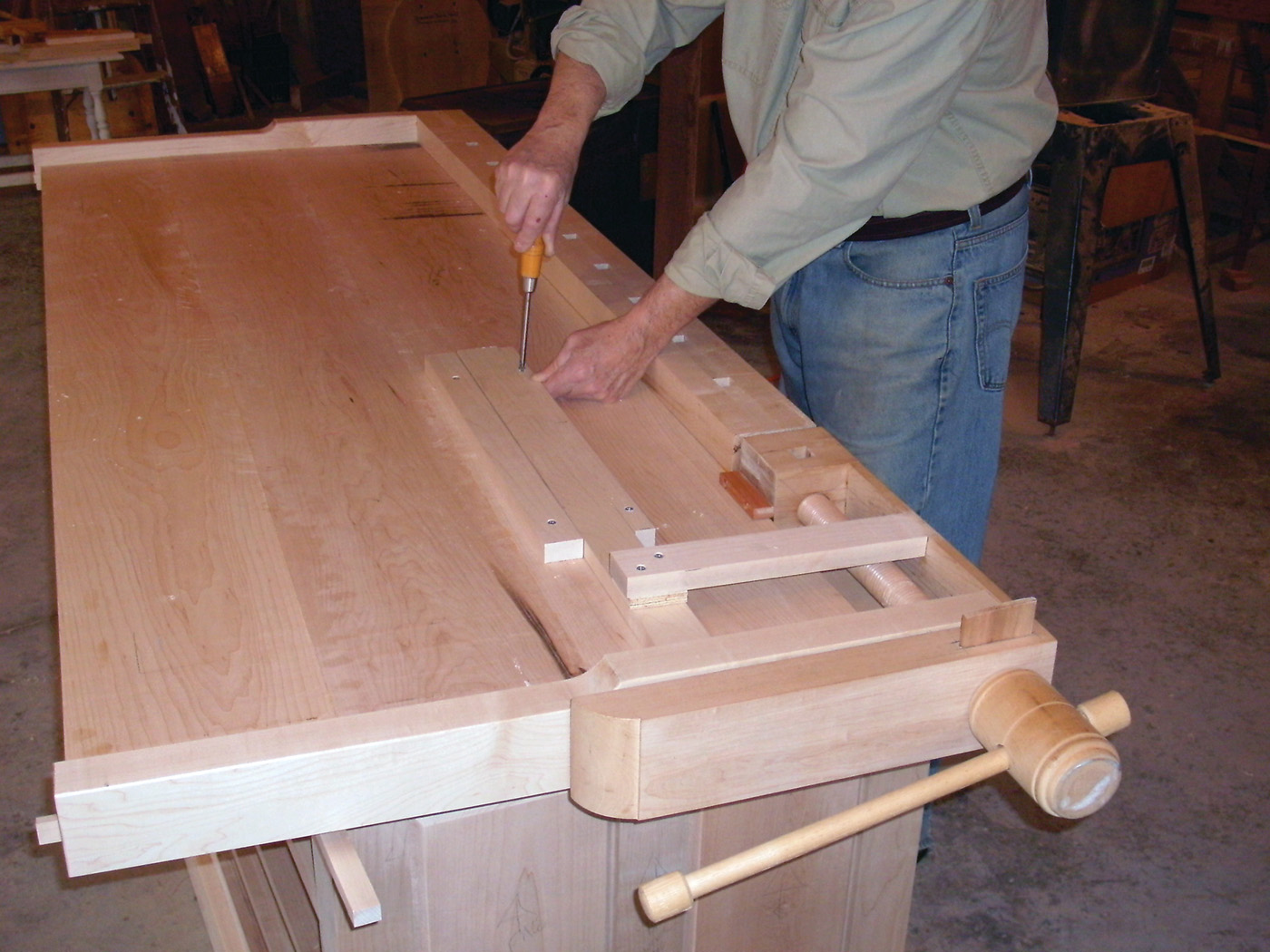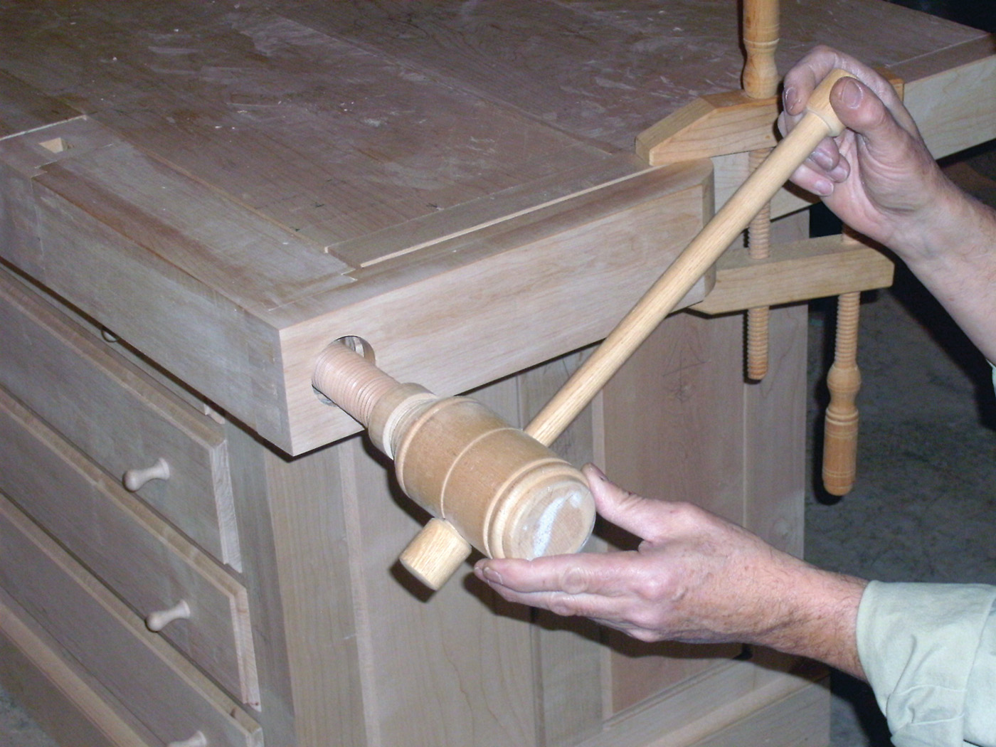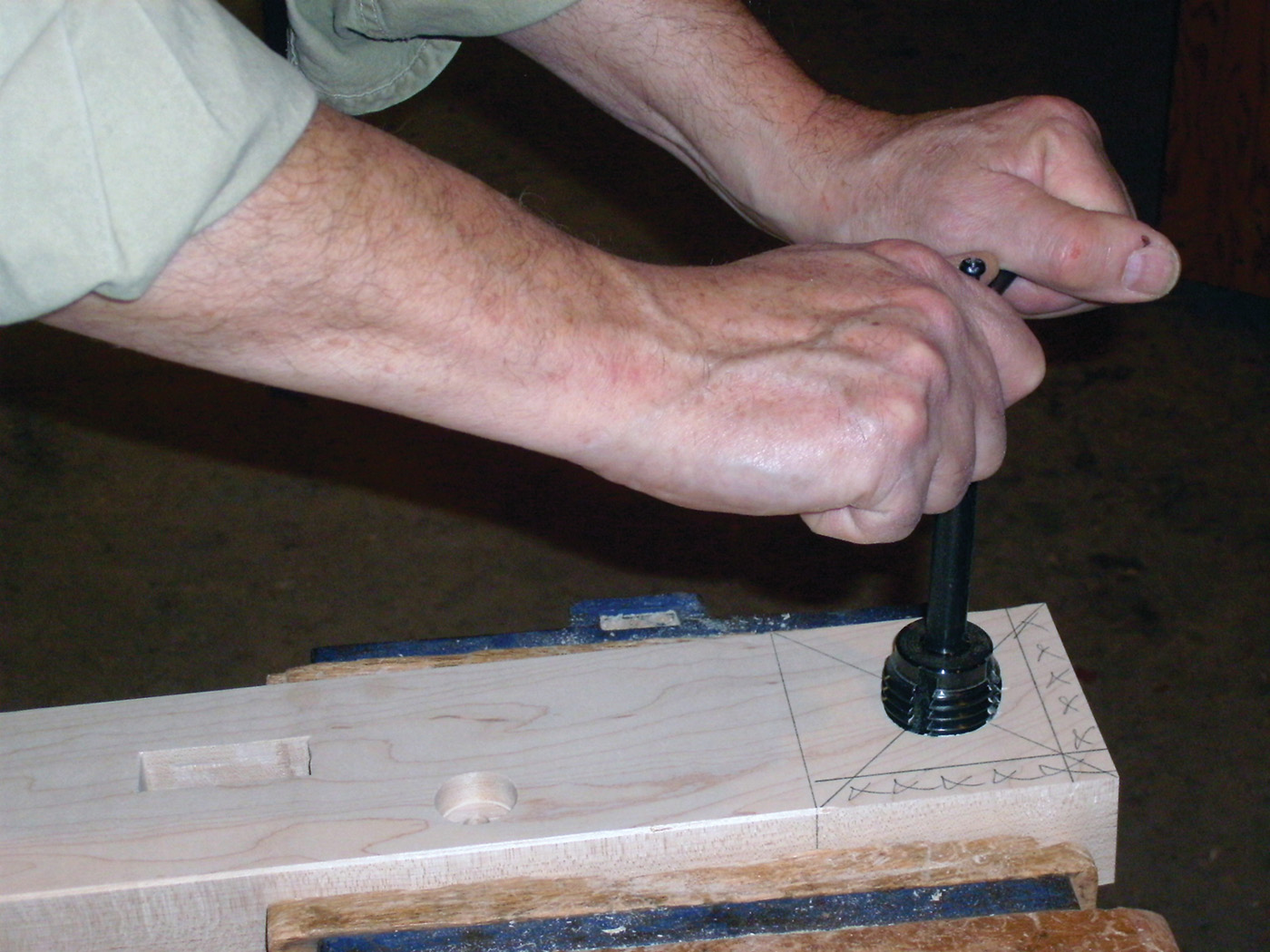 18 The vise hole is tapped with a large wood tap.