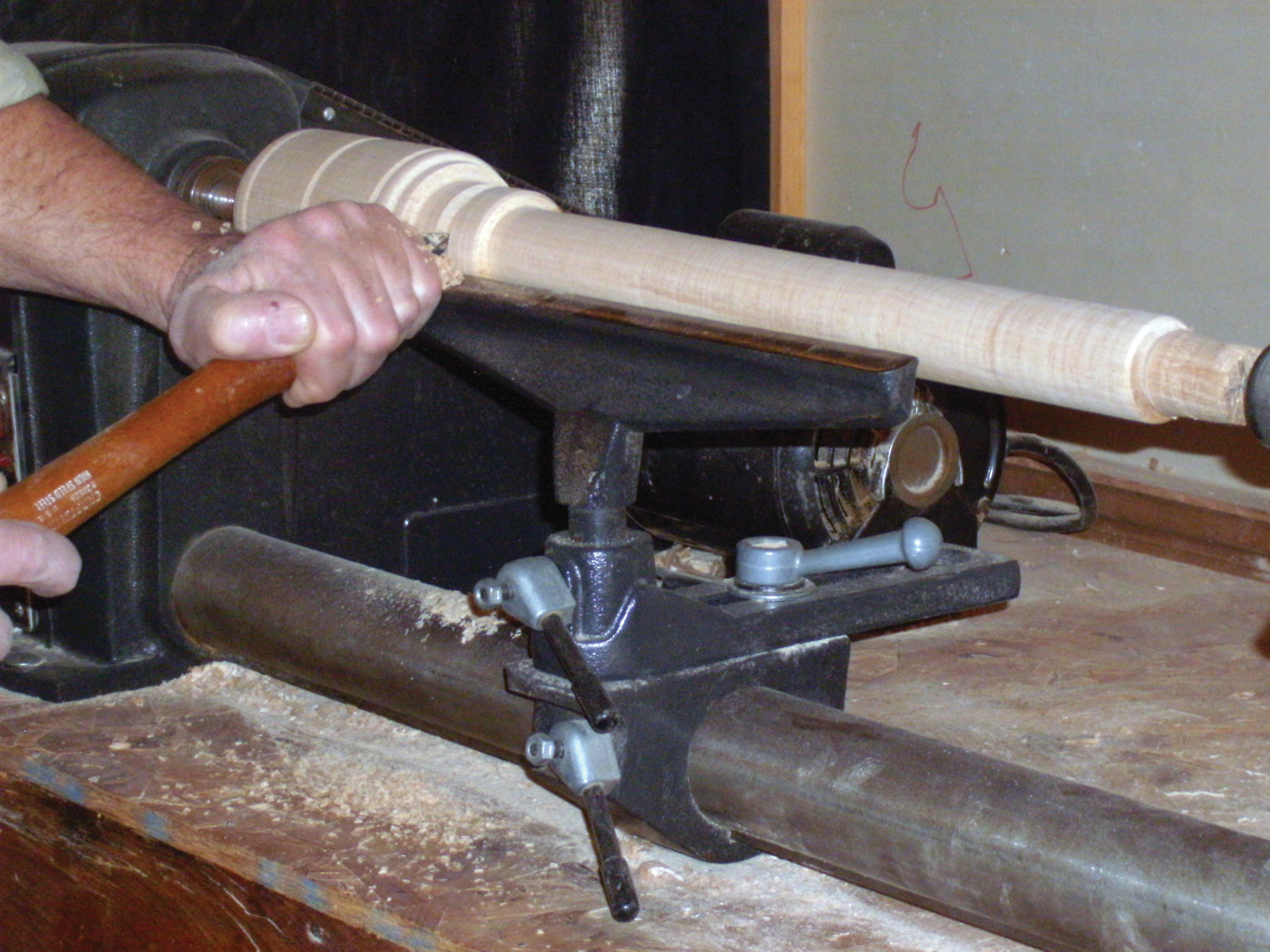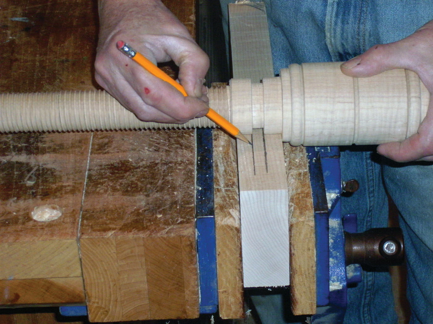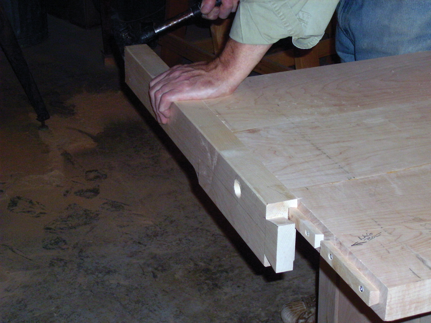 18 The vise hole is tapped with a large wood tap.
