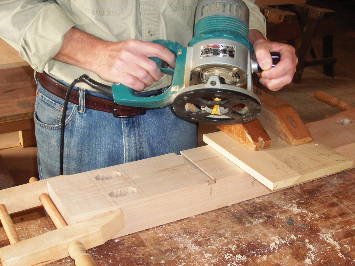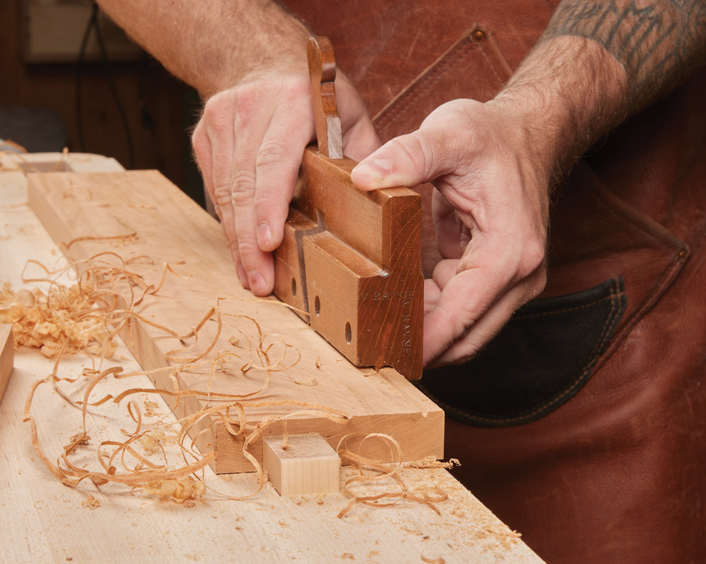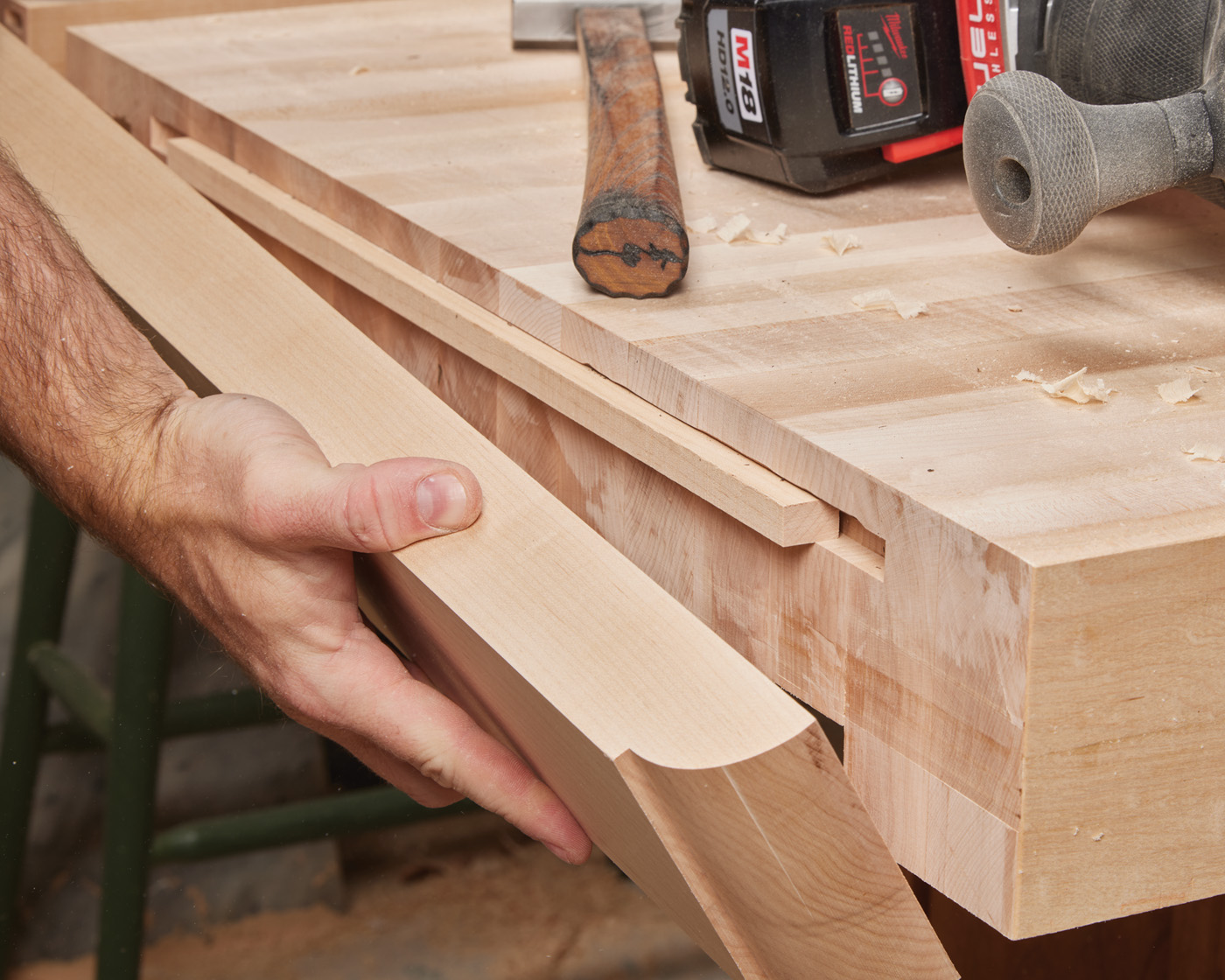 D A molding plane makes quick work of the workbench beads.