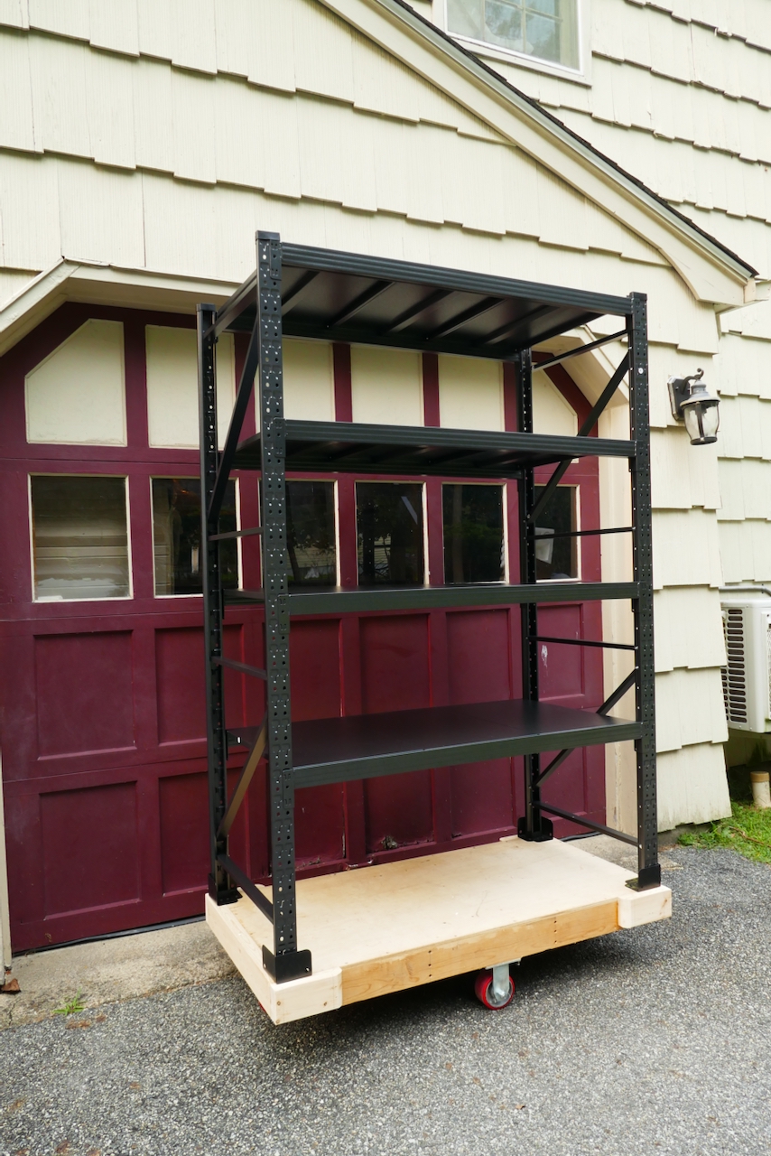 The quality of the casters provides ample support, allowing the fully loaded rack and cart to travel smoothly on the garage floor with no problem at all. This system of shelves upon carts is incredibly practical for small spaces and shops that accumulate a lot of machines and supplies, as it allows you to safely move things around to negotiate tight space constraints.