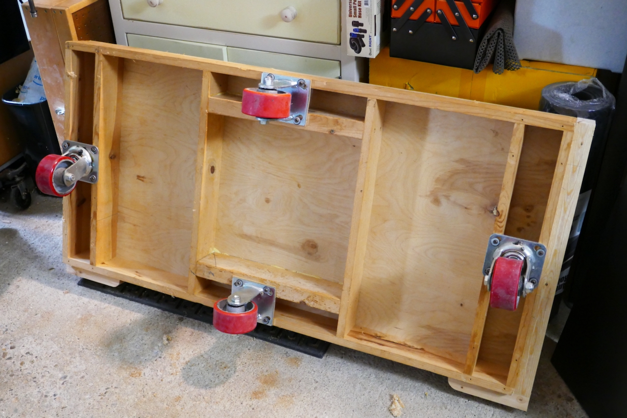 The steel rack’s base was slightly larger than my existing plywood cart top. To increase the surface and ensure the rack had a solid, stable foundation, I made an extension.