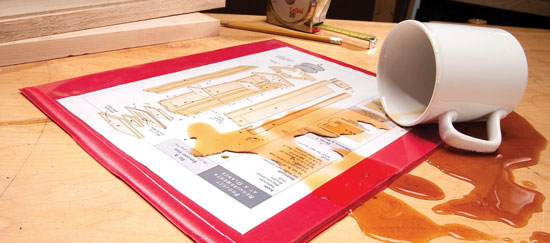 I like to work from plans, but paper is hard to protect in a workshop. My plans often become so torn, crumpled and soiled that they’re impossible to read when I need them the most.
