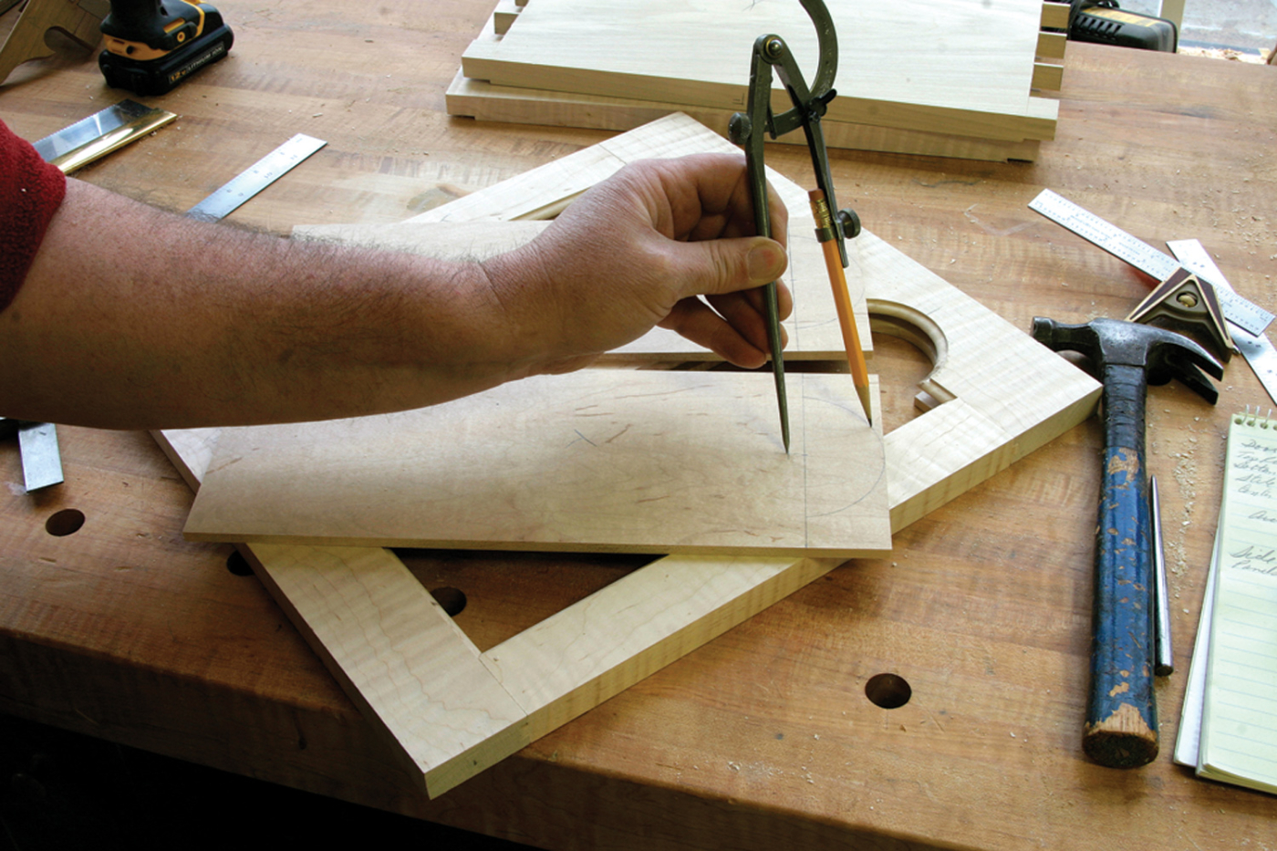 Here’s the point. Increase the radius of the panels’ arched tops by 5⁄16″ with the compass point set below the top shoulder by an equal amount.