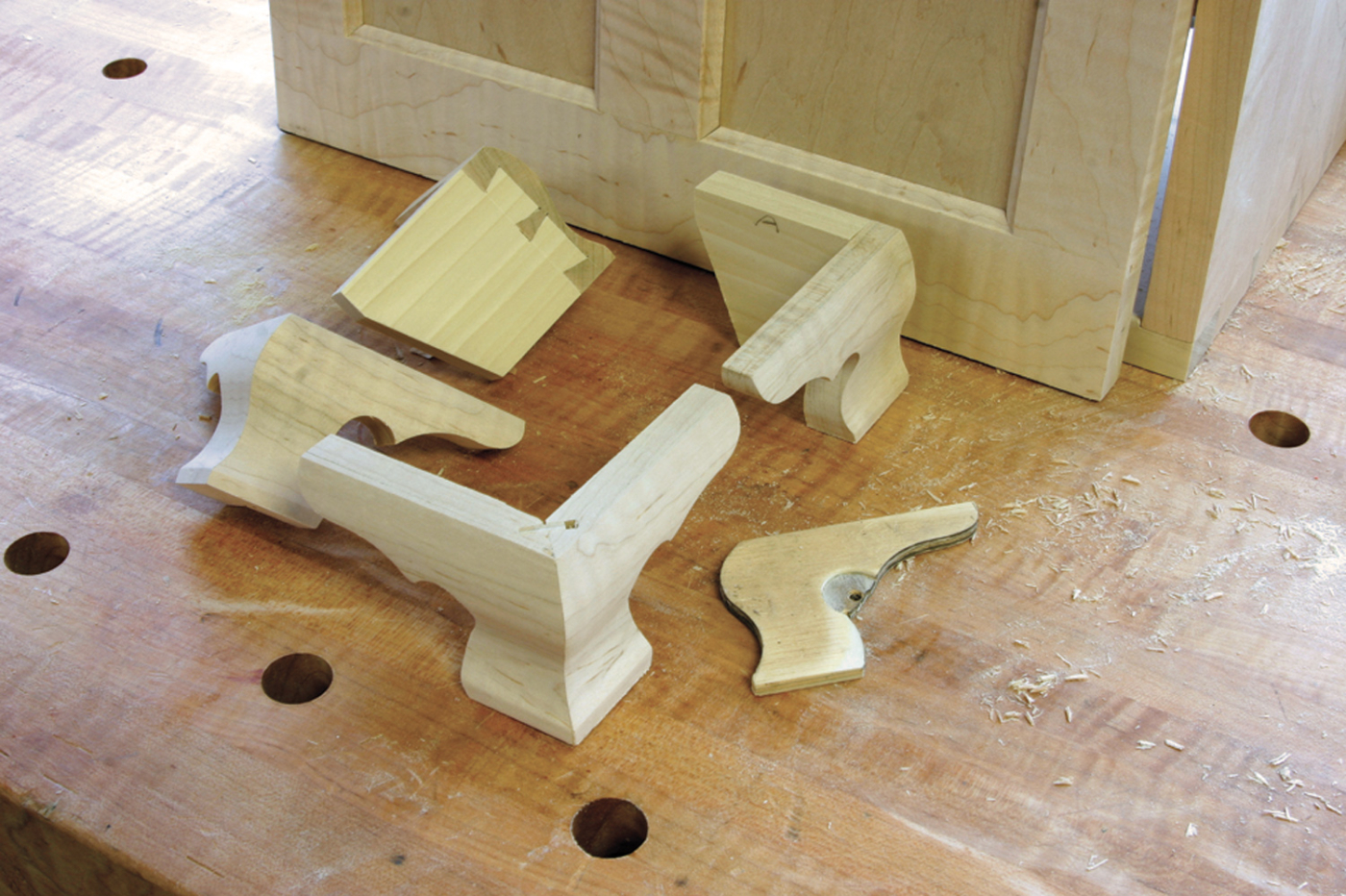 Due to limited cutting height at my band saw – I have yet to install a riser block – I learned to make ogee bracket feet using a table saw. However, with feet the size needed for this project, the band saw is the perfect machine to use.