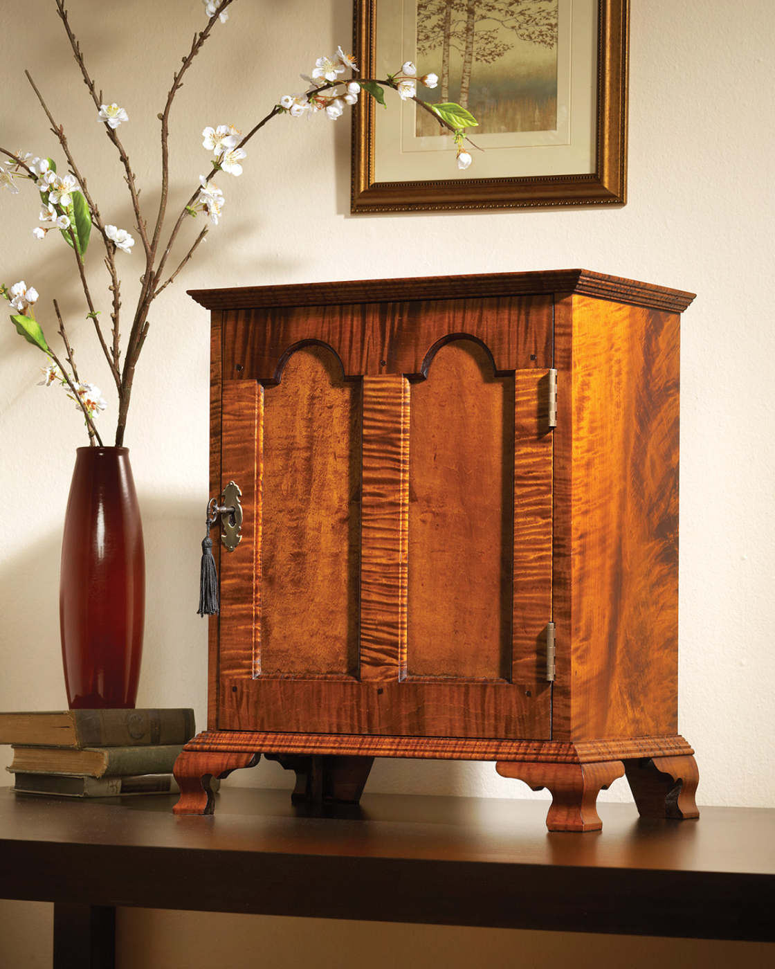 Not only is the door important to the look of this box, it’s also a large portion of the work, if you build the door with mitered sticking (where the moulding is an integral part of the door parts and not an addition). This requires a few extra steps, but the results are top-notch.